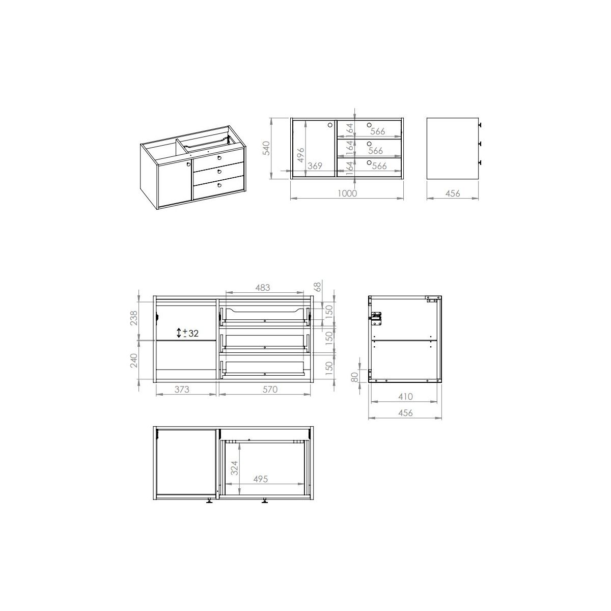 - Möbelstück nur mit Arbeitsplatte kompatibel, zur Einrichtung als Kommode oder Waschtischunterschrank
