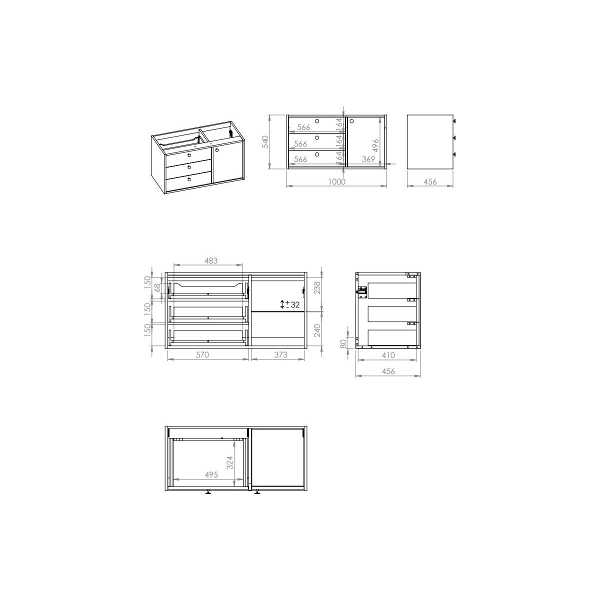 - Möbelstück nur mit Arbeitsplatte kompatibel, zur Einrichtung als Kommode oder Waschtischunterschrank