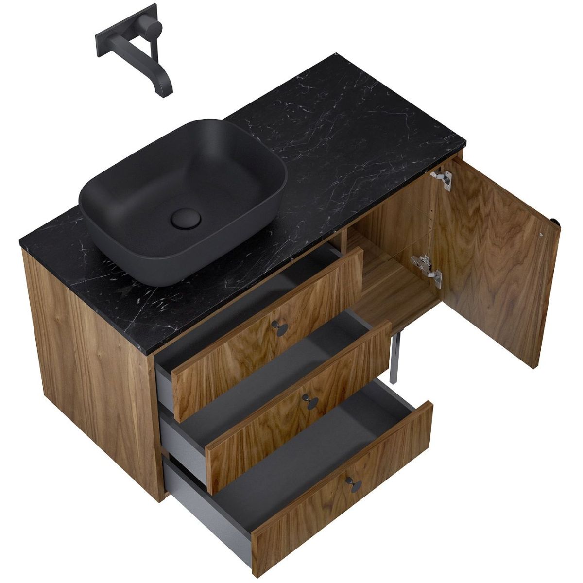 - Vollschublade ohne Ausschnitt für Siphon, nur platzsparender Siphon montierbar