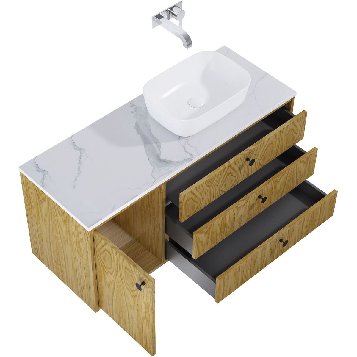 - Vollschublade ohne Ausschnitt für Siphon, nur platzsparender Siphon montierbar