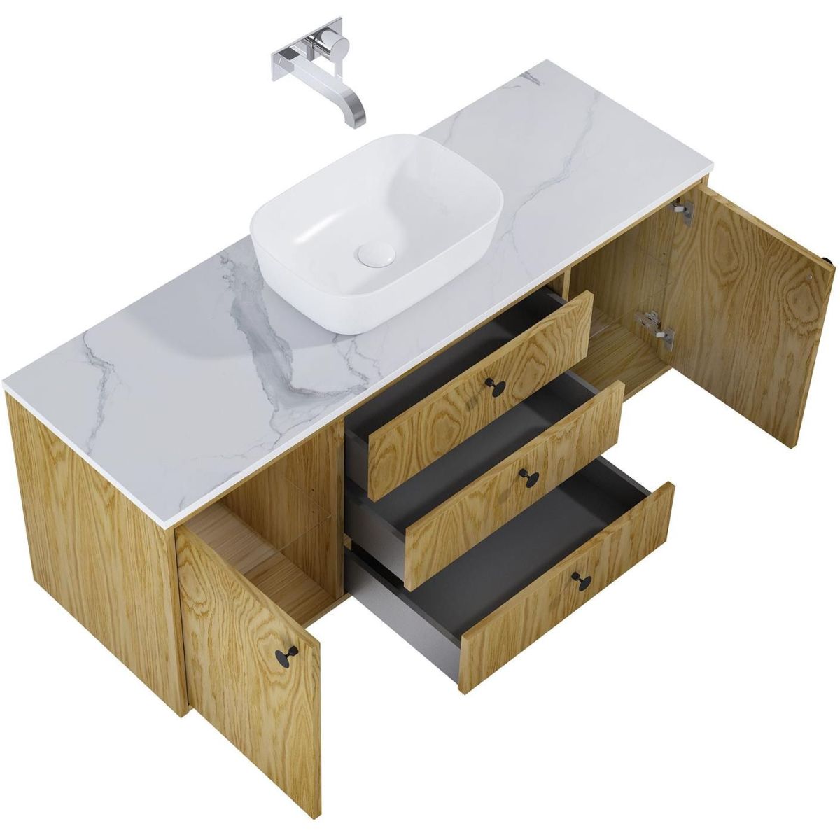 - Vollschublade ohne Ausschnitt für Siphon, nur platzsparender Siphon montierbar