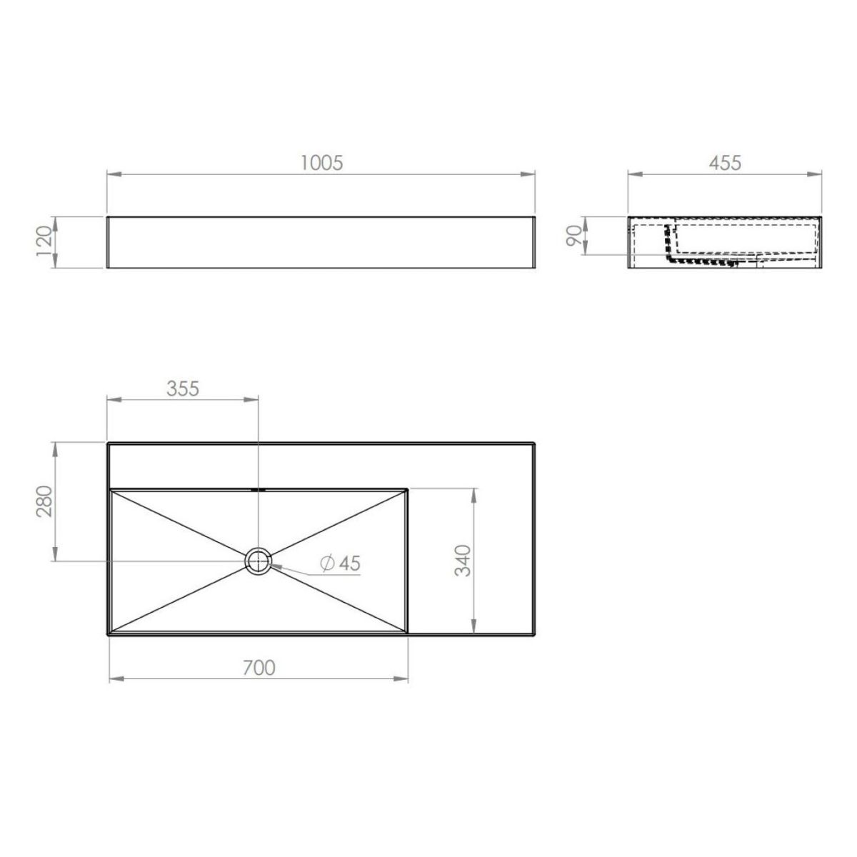 - Waschbecken ohne Hahnloch, Möglichkeit, selbst ein Loch an einer beliebigen Stelle zu bohren