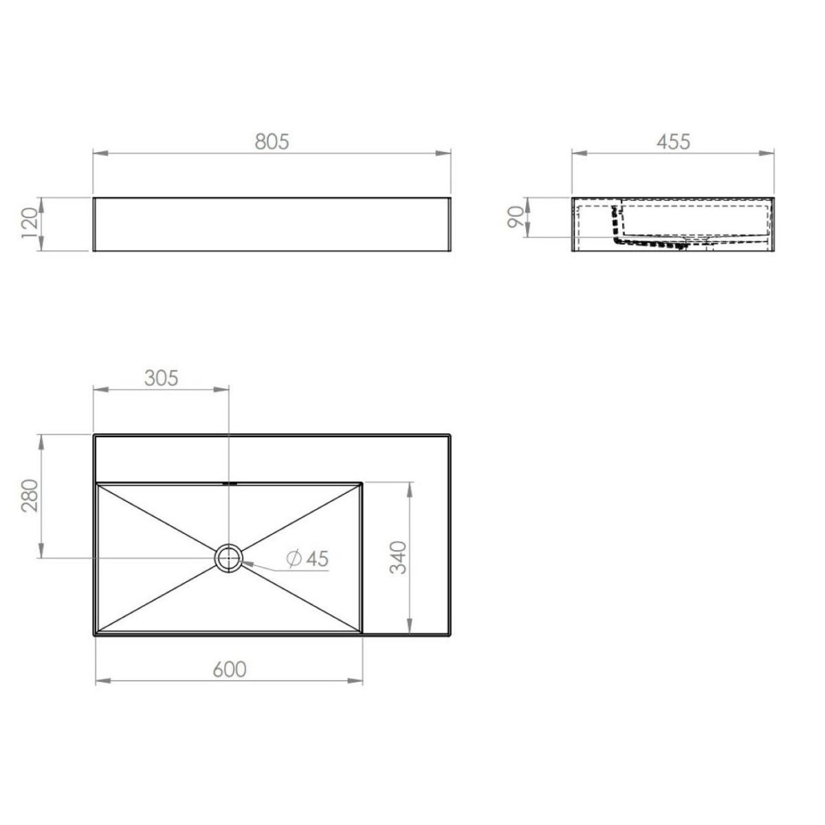 - Waschbecken ohne Hahnloch, Möglichkeit, selbst ein Loch an einer beliebigen Stelle zu bohren