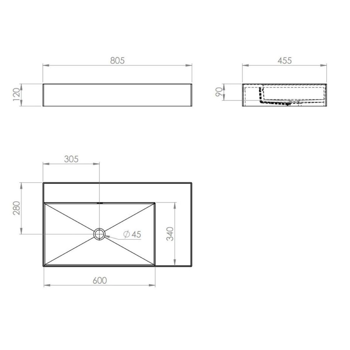 - Waschbecken ohne Wasserhahnbohrung, Bohrung an beliebiger Stelle selbst möglich