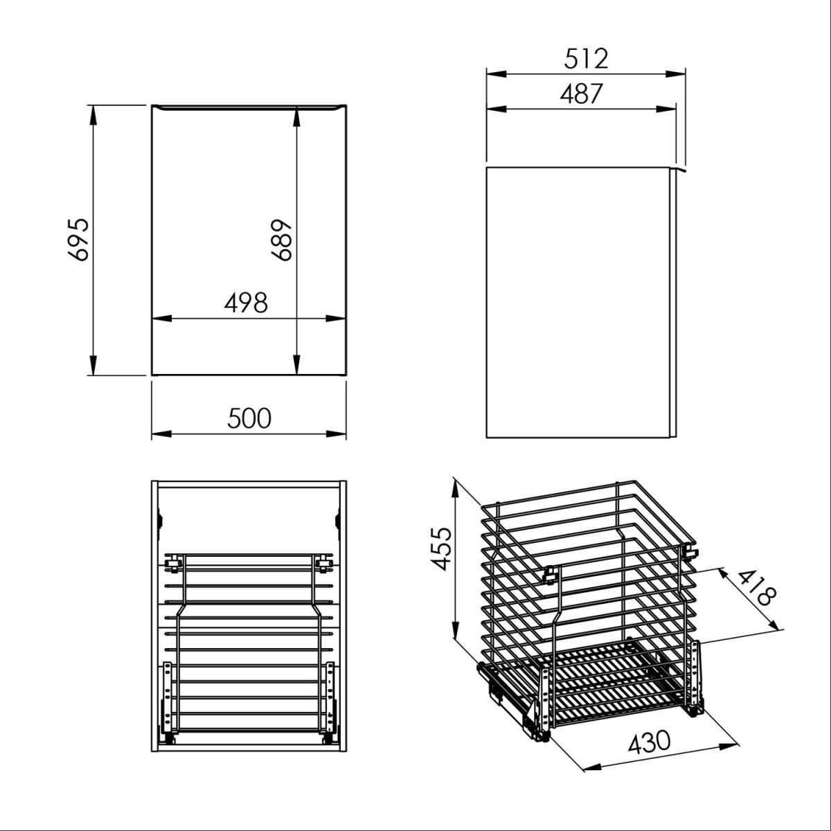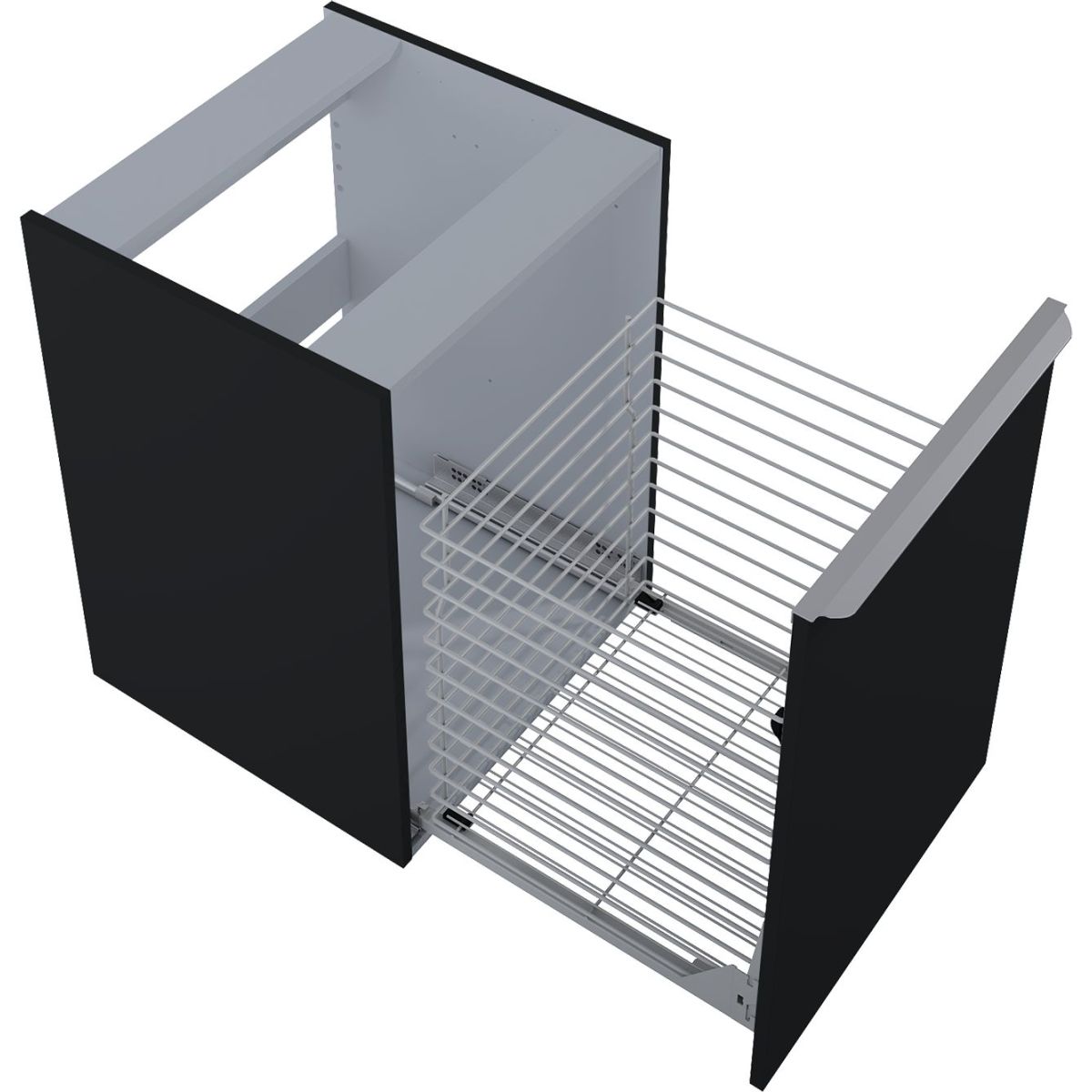 Kommode Lofty 50 cm mit Cargo-Korb. Hergestellt aus hochwertigen Materialien, Front und Korpus aus laminierter Platte, lackiert in Schwarz matt. Der Cargo-Korb in der Kommode verfügt über robuste Führungen mit einer Tragkraft von bis zu 20 kg, mit Vollauszug und Soft-Close-System.