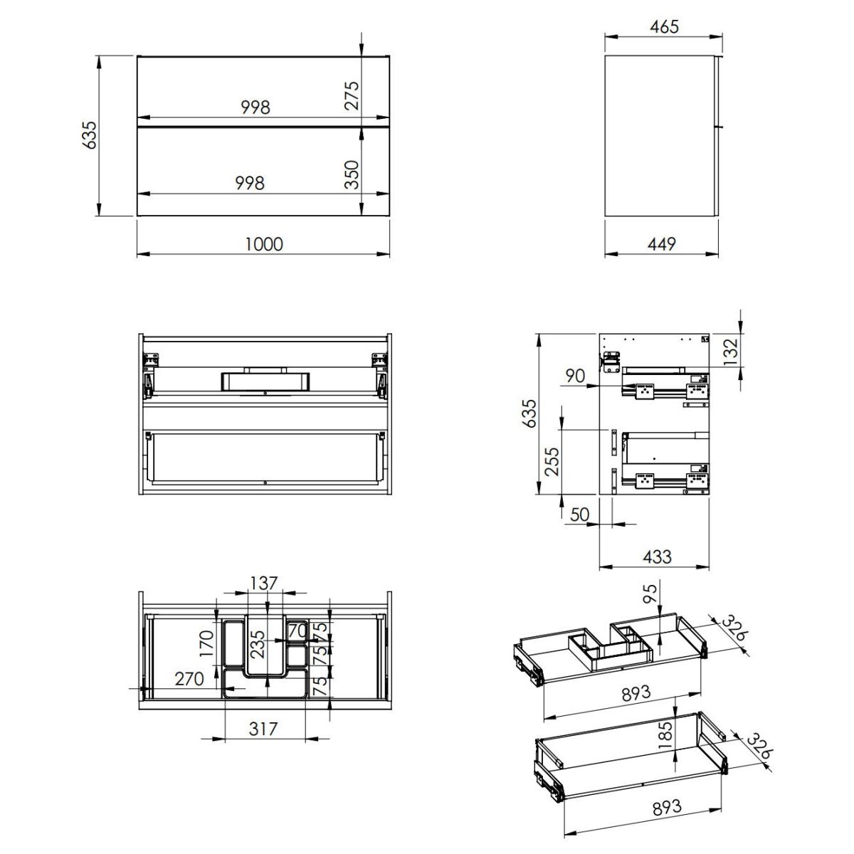 - Metallseitenwände der Schubladen