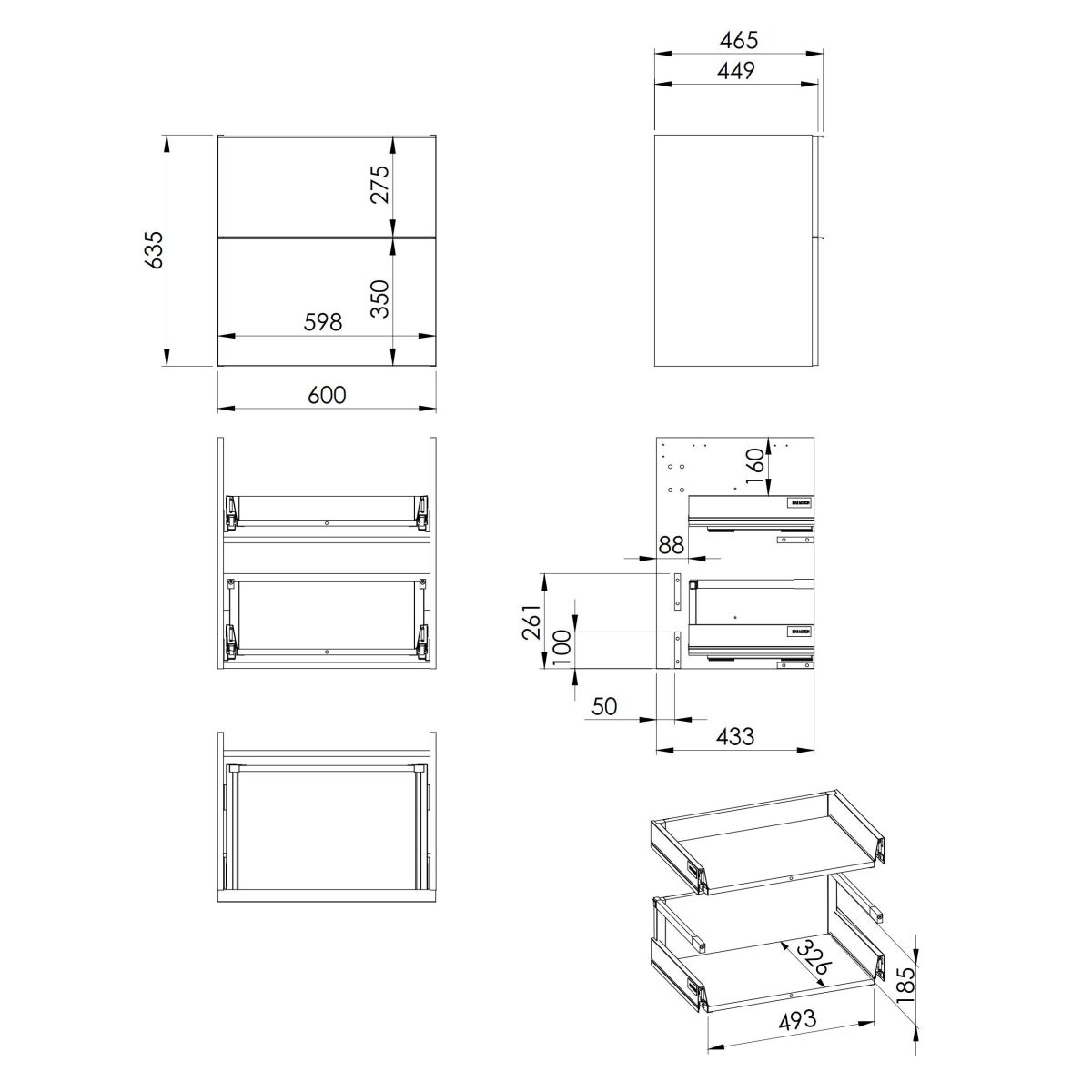 - Typ: Seitenschrank hängend, Unterschrank hängend