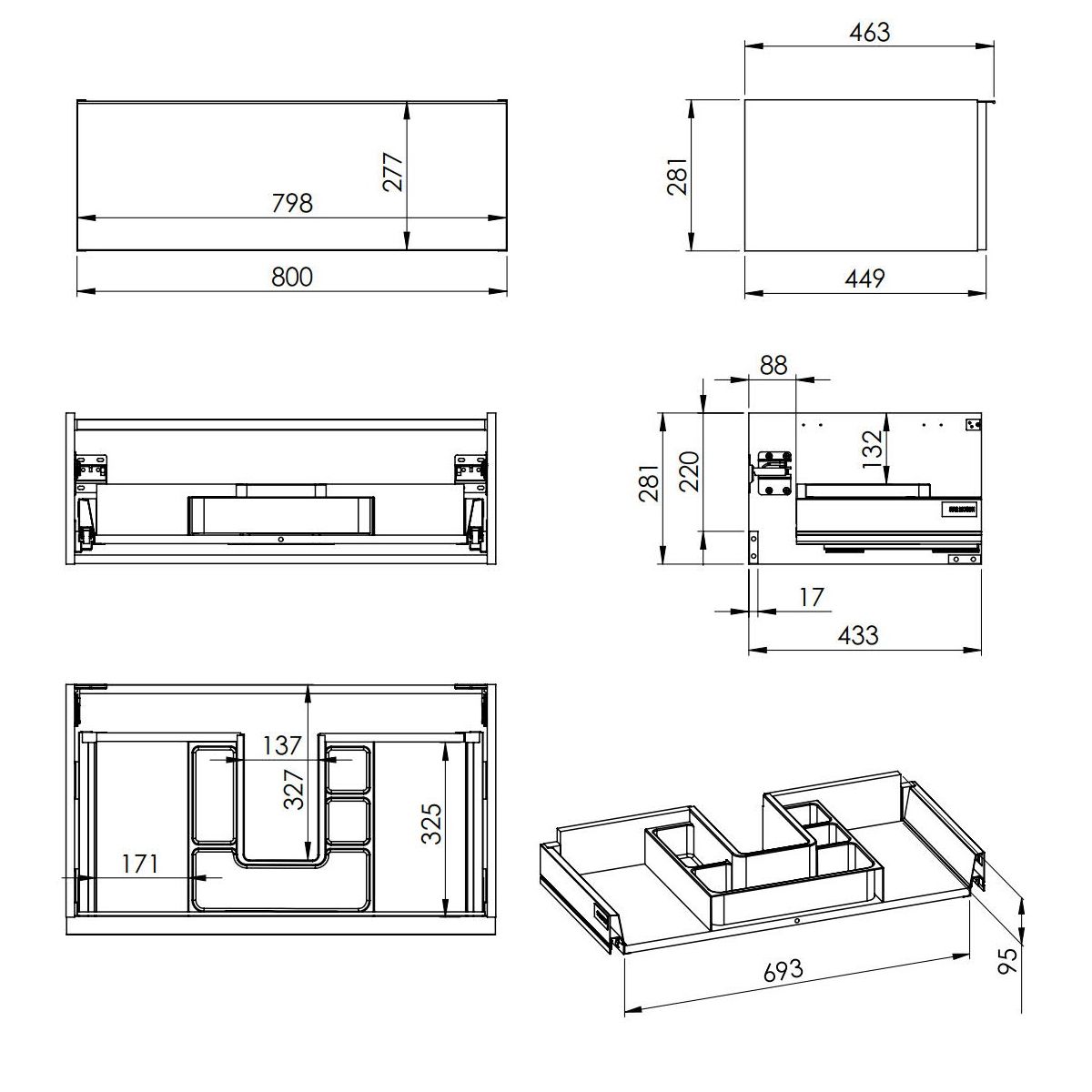 - Metallseiten der Schublade