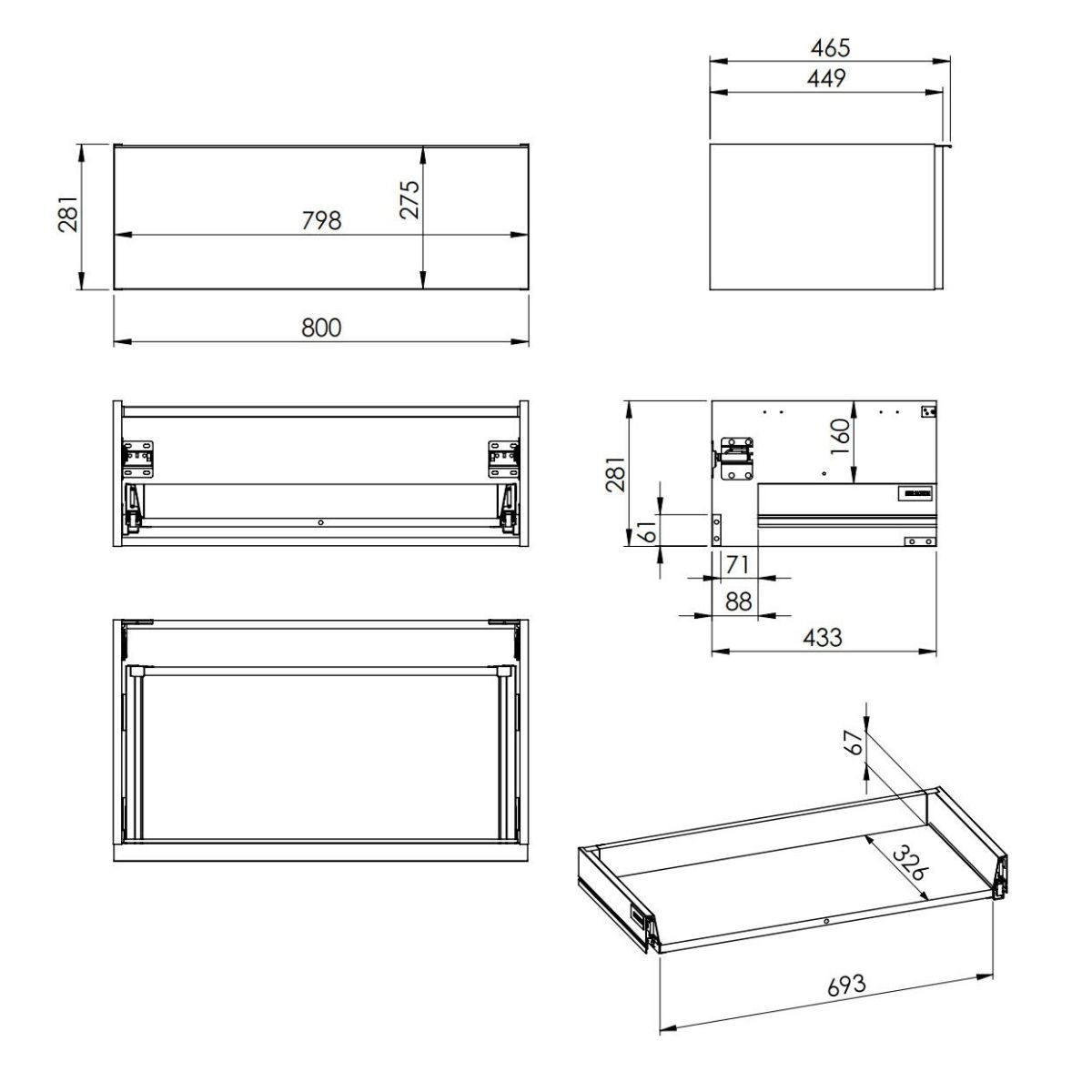 - Front und Korpus aus 16 mm laminierter Platte - Soft-Close-Führungen, Vollauszug