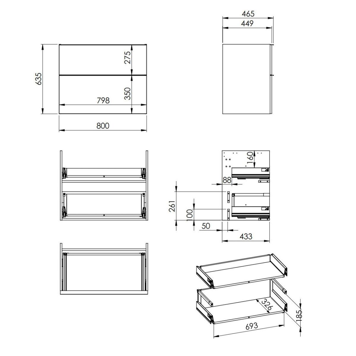 - Metallseitenwände der Schubladen