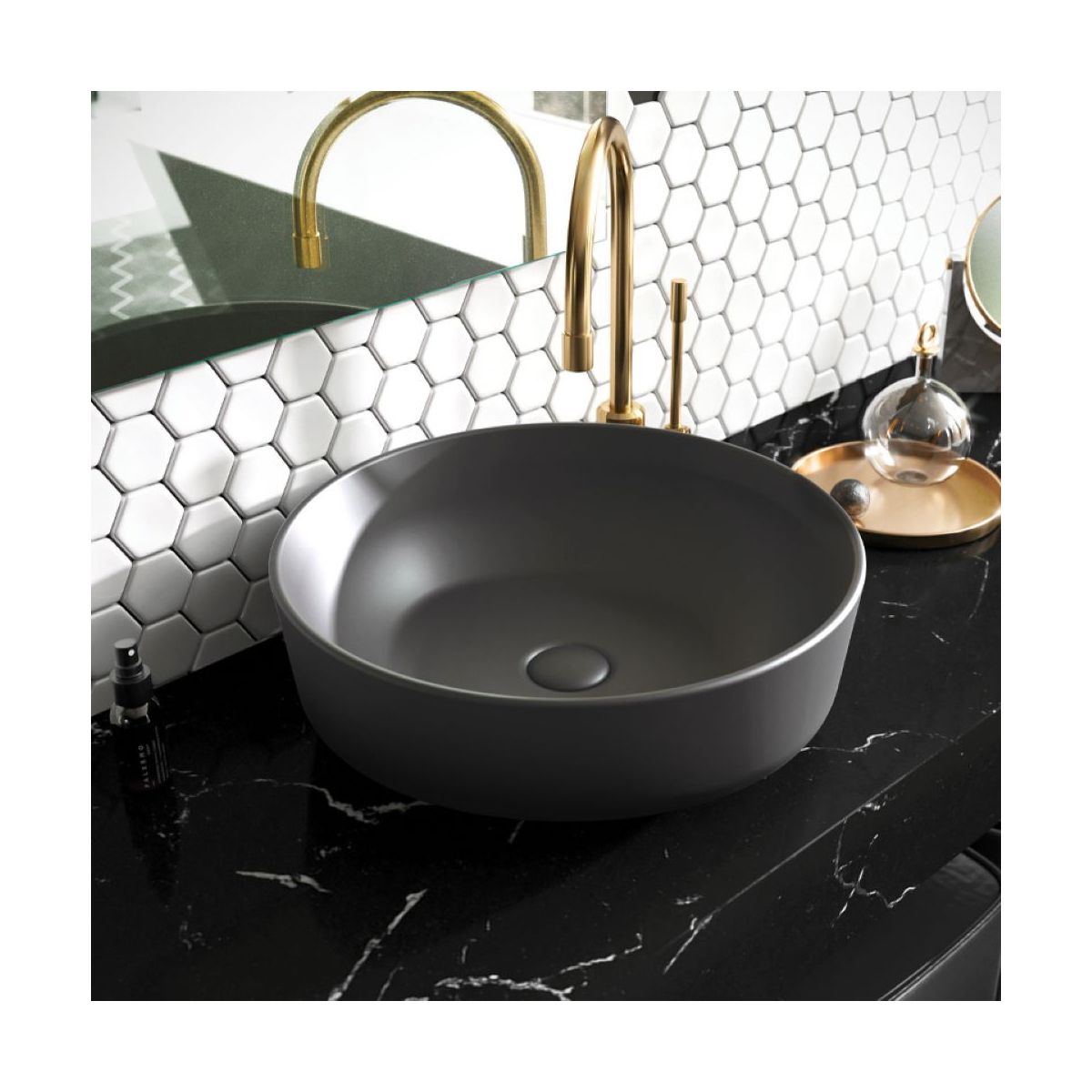 Elita Lorca Waschbecken 41.5x41.5 cm rund Aufsatzwaschbecken anthrazit RE040420046010