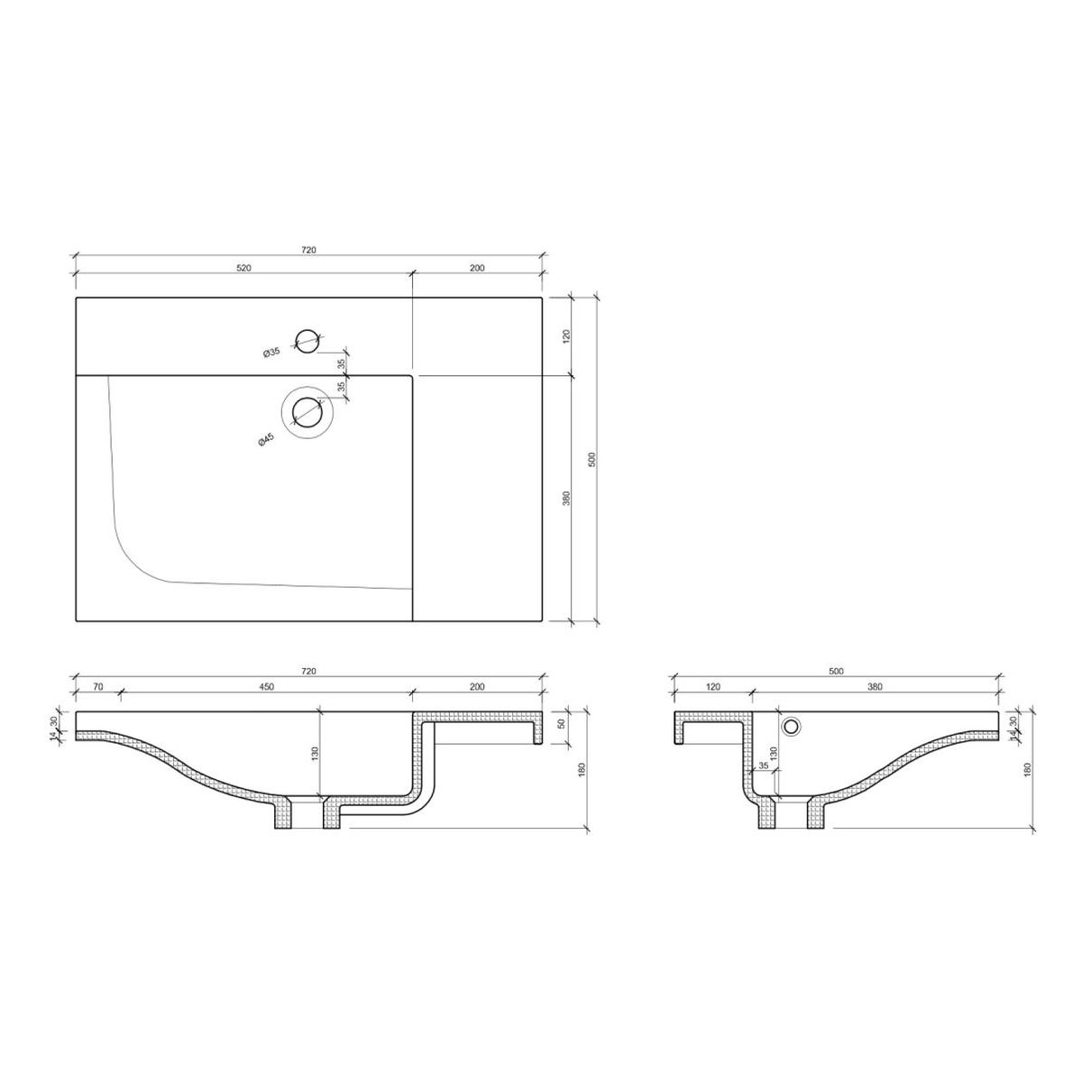 Elita Metis Waschbecken 72x50 cm rechteckig Möbel weiß RE040700098060