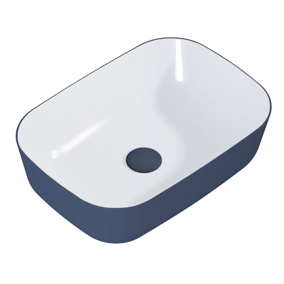 Elita Reni Waschbecken 45.5x32.5 cm rechteckig Aufsatzwaschbecken weiß-blau RE040460896170