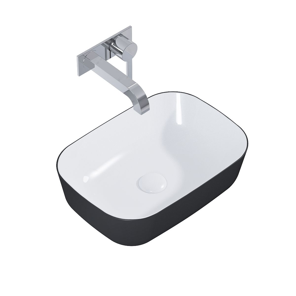 Elita Reni Waschbecken 45.5x32.5 cm rechteckig Aufsatzwaschbecken weiß-schwarz RE040460896110