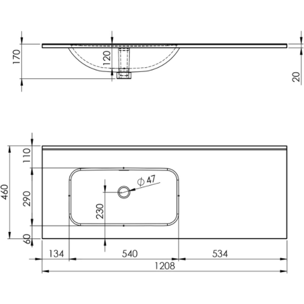 - mit verlängerter Arbeitsplatte auf der rechten Seite