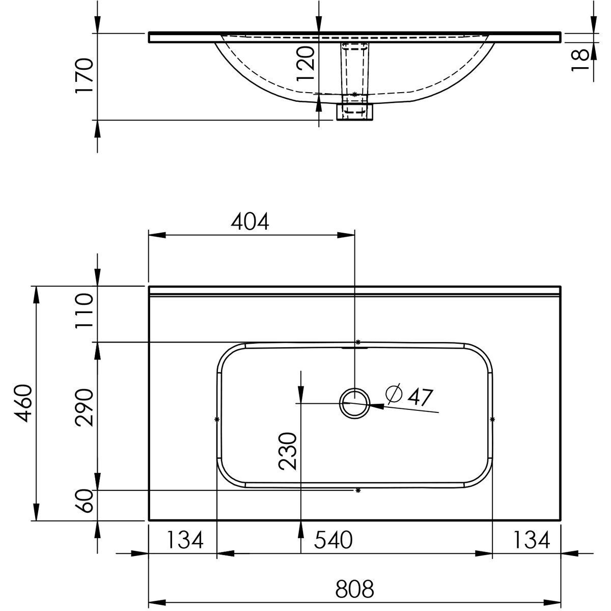 - ohne Loch für Wasserhahn