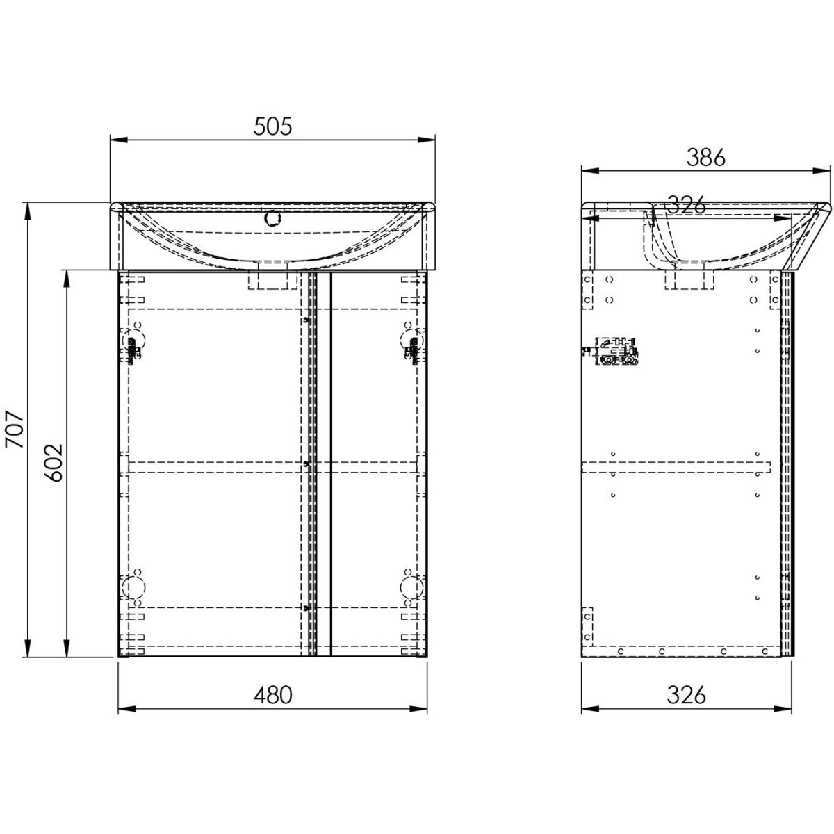 Das Set Skye 50 cm ist mit asymmetrischen Türen mit Soft-Close-System und einem höhenverstellbaren Regal ausgestattet. Das Set ist aus hochwertigen Materialien gefertigt, die Front und der Korpus bestehen aus hochglanzlackierten Platten in Weiß. Der verchromte Metallgriff ist vertikal über die gesamte Höhe des Schranks angebracht. Das Set besteht aus einem Waschtischunterschrank und einem Waschbecken mit elegant geformter Schale. Das Set passt perfekt zu den Schränken aus der Kollektion For All.