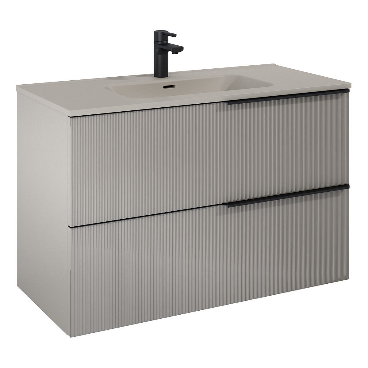 Die vom Großstadtstil inspirierte Kollektion SOHO ist ein avantgardistisches Angebot für moderne und stilvolle Badezimmer. Die geriffelten Glasfronten verleihen den Möbeln ein außergewöhnliches Aussehen, sorgen für Abwechslung und schmücken den Raum. Hinter den auffälligen Fronten verbergen sich zwei Schubladen mit Metallseiten in Anthrazit. Der rechtsseitige, perfekt geformte Griff ergänzt das Profil des Schranks ideal.