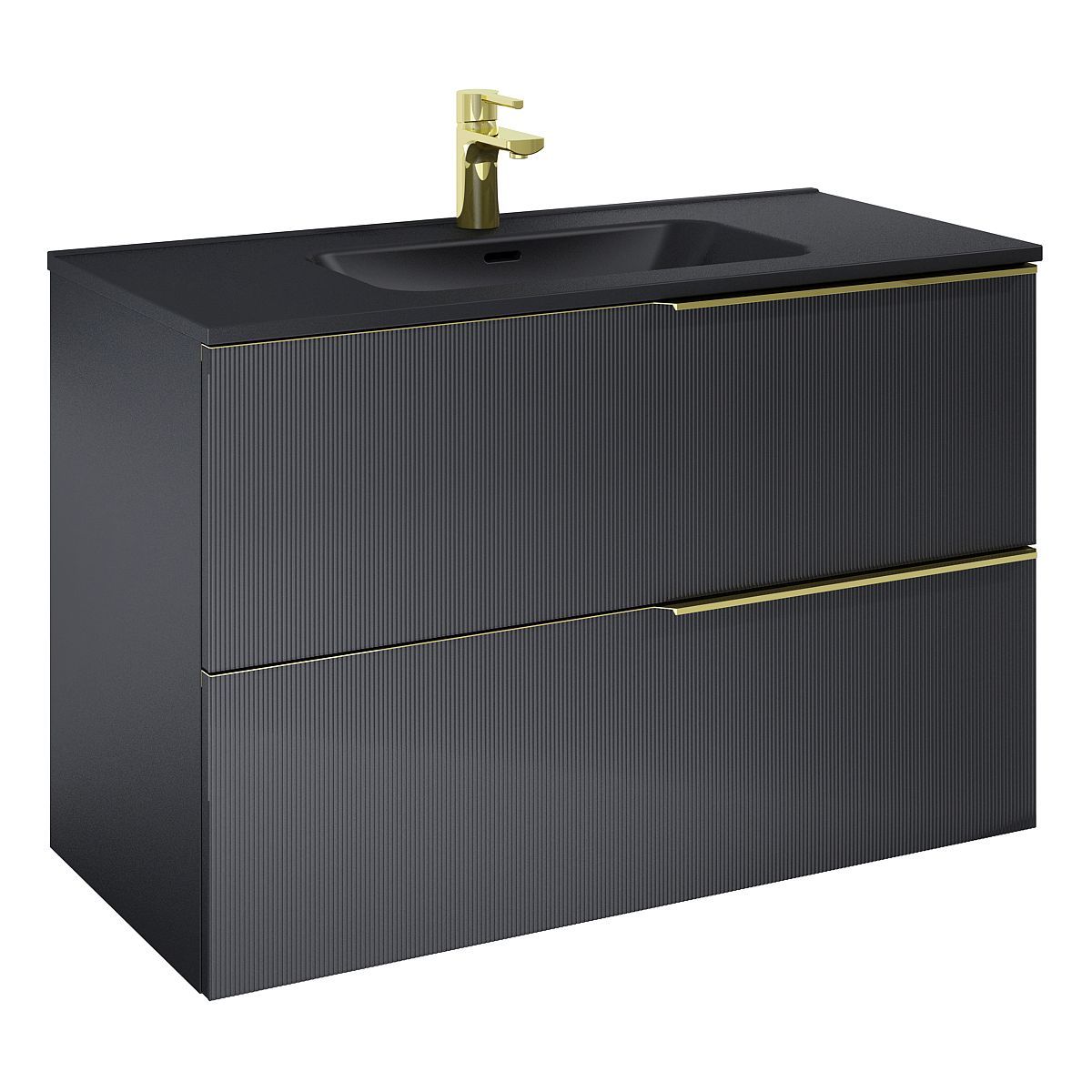 Die vom Großstadtstil inspirierte Kollektion SOHO ist ein avantgardistisches Angebot für moderne und stilvolle Badezimmer. Die geriffelten Glasfronten verleihen den Möbeln ein außergewöhnliches Aussehen, sorgen für Abwechslung und schmücken den Raum. Hinter den auffälligen Fronten verbergen sich zwei Schubladen mit Metallseiten in Anthrazit. Der rechtsseitige, perfekt geformte Griff ergänzt das Profil des Schranks ideal.
