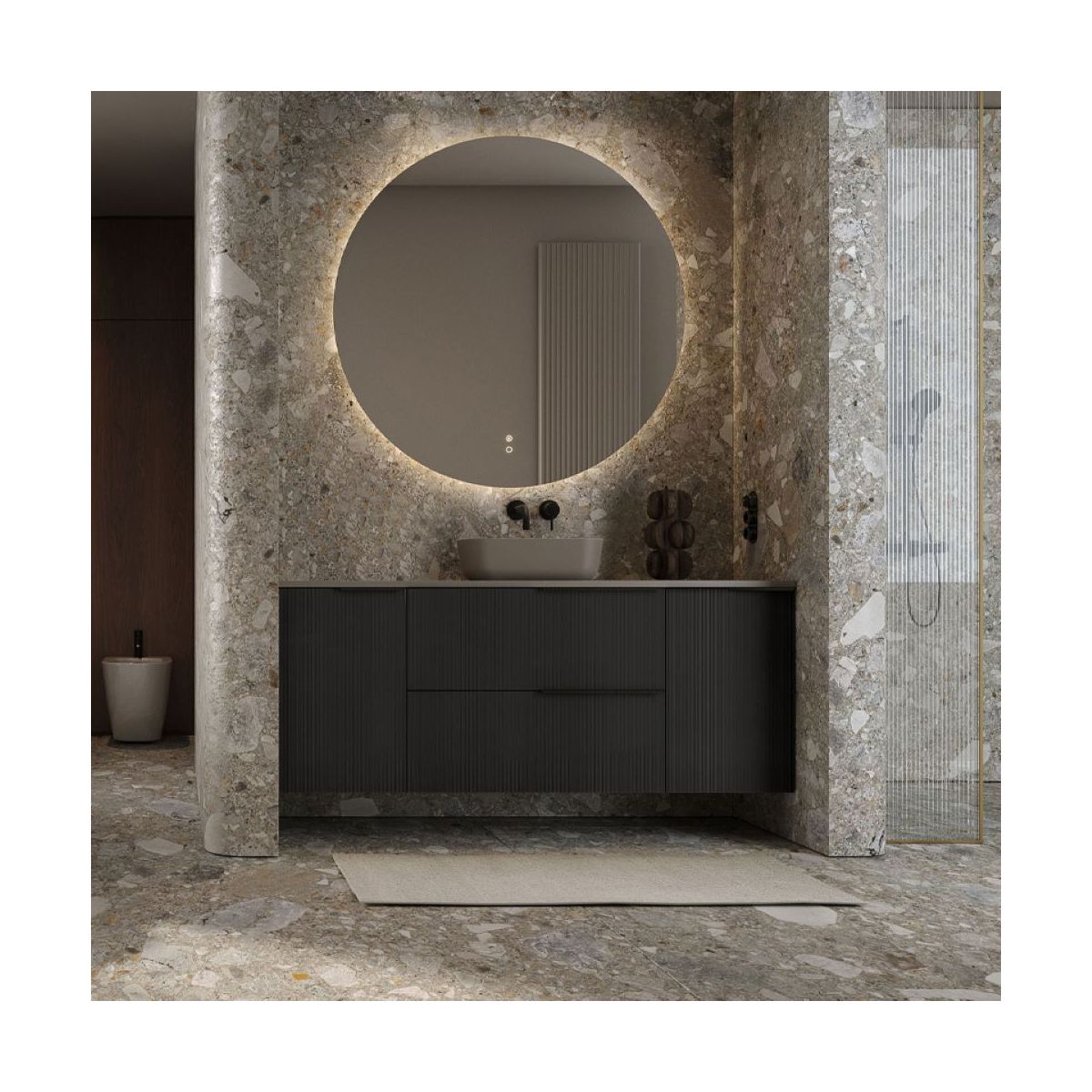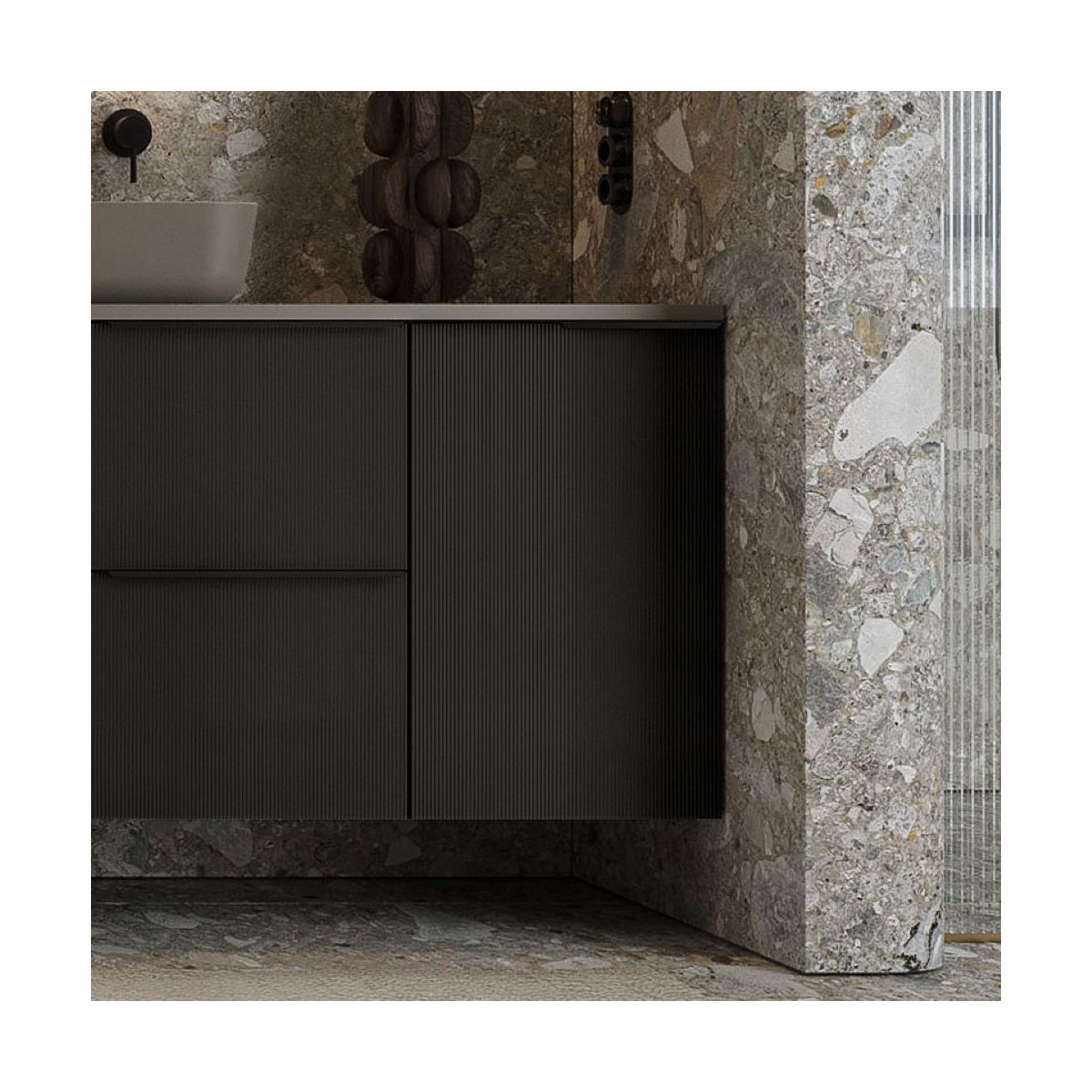 Die vom Großstadtstil inspirierte Kollektion Soho ist ein avantgardistisches Angebot für moderne und stilvolle Badezimmer. Die geriffelten Glasfronten verleihen den Möbeln ein außergewöhnliches Aussehen, sorgen für Abwechslung und schmücken den Raum. Der perfekt geformte Randgriff ergänzt das Profil des Schranks ideal.