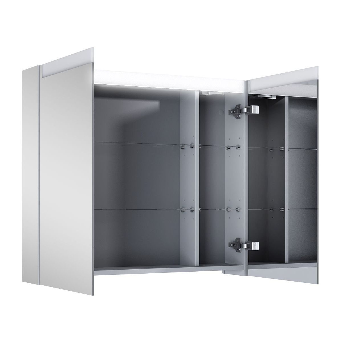 Hängeschränke mit Spiegeln sind eine äußerst elegante Option, mit der Sie ein luxuriöses, modernes und diskretes Interieur schaffen können. Die modernen, vielseitigen Hängeschränke mit Spiegel und verspiegelten Seitenwänden werden aus Materialien höchster Qualität gefertigt, wobei alle Elemente mit größter Sorgfalt verarbeitet werden. Die Schränke sind mit einem Soft-Close-System und höhenverstellbaren Glasböden ausgestattet und bieten Platz für alle notwendigen, griffbereiten Gegenstände. Die Schränke sind außerdem mit einer Innensteckdose, einer LED-Beleuchtung und einem zusätzlichen Innenspiegel an der Tür ausgestattet. Unabhängig vom gewählten Stil ist der Spiegelschrank eine spektakuläre Ergänzung für jedes Badezimmer.