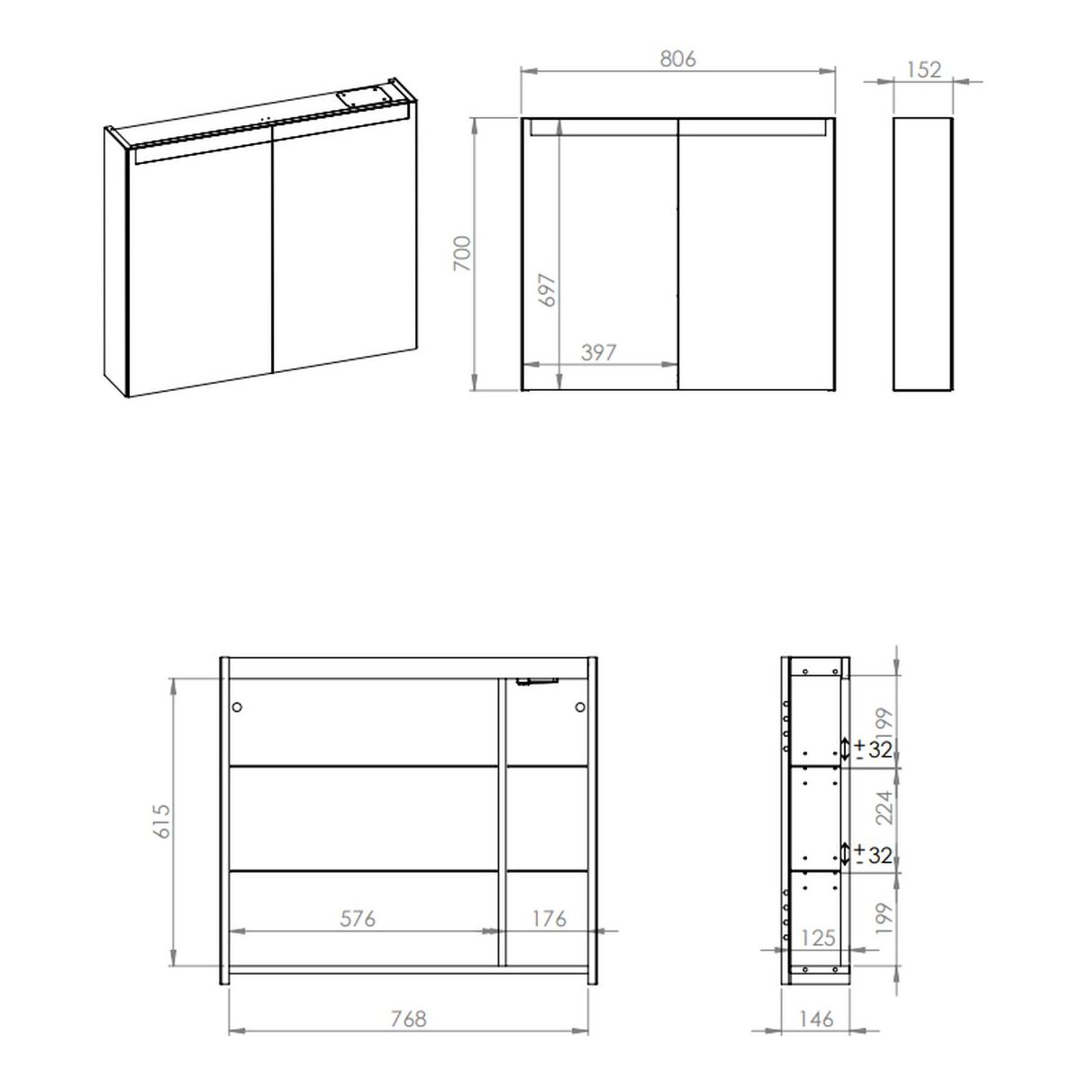 Elita Special Kabinett 80.6x15.2x70 cm Spiegelschrank RE068925000010