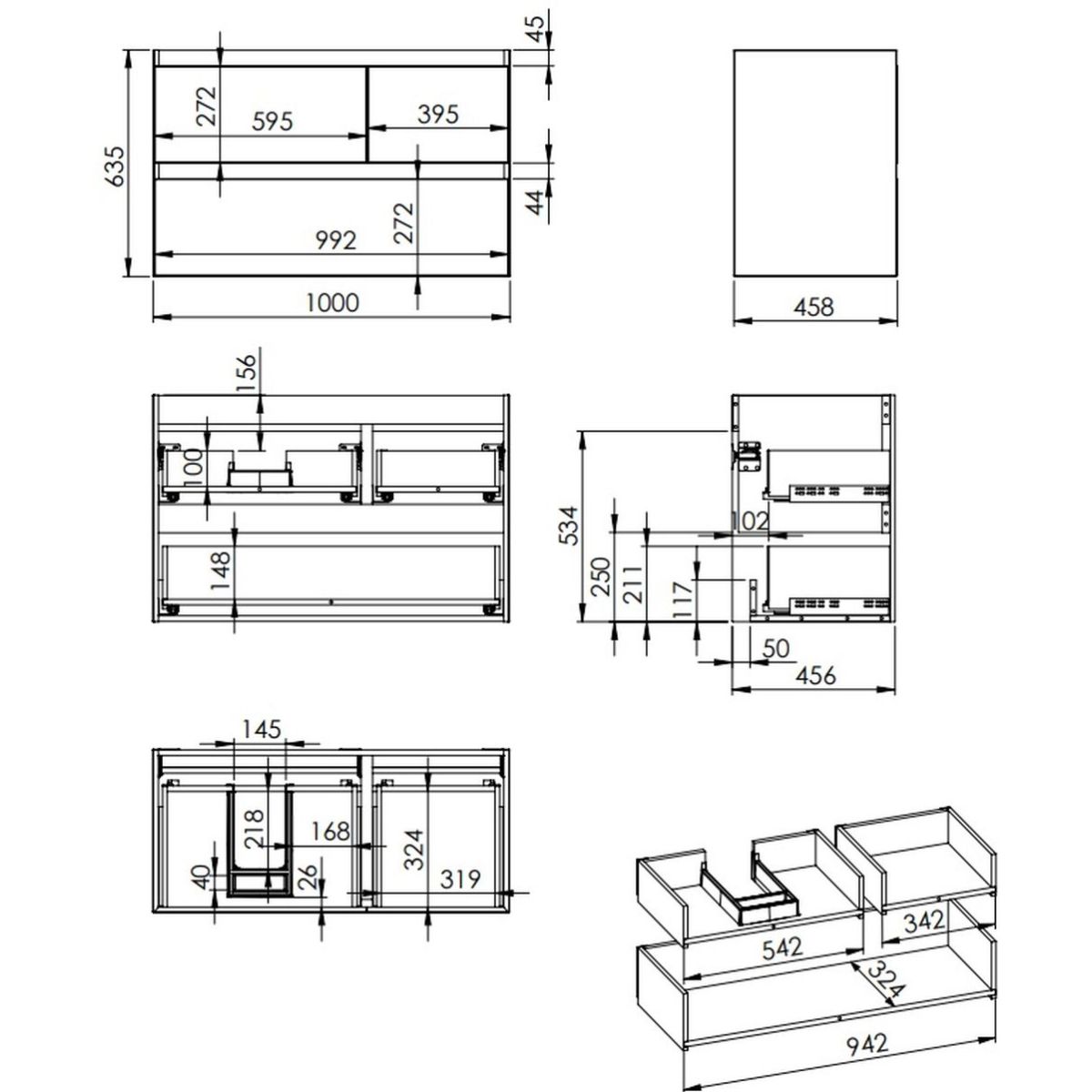 - dünne Stahlseitenwände der Schubladen mit einer Stärke von 13 mm