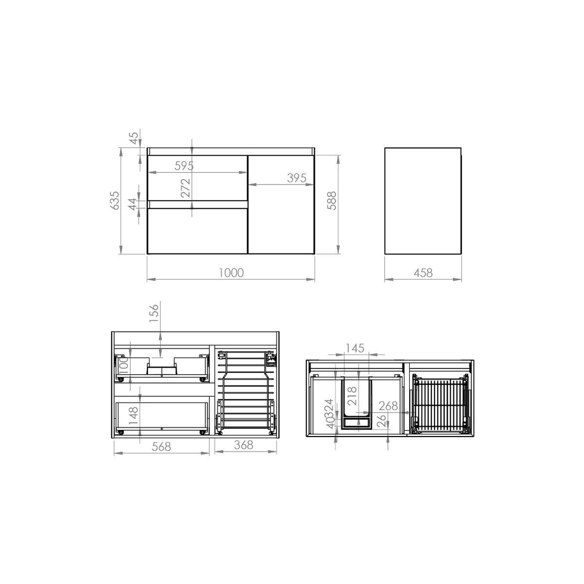 - Besteht aus einem 60 cm breiten Schrank und einer Kommode mit einem Cargo-Korb auf der rechten Seite