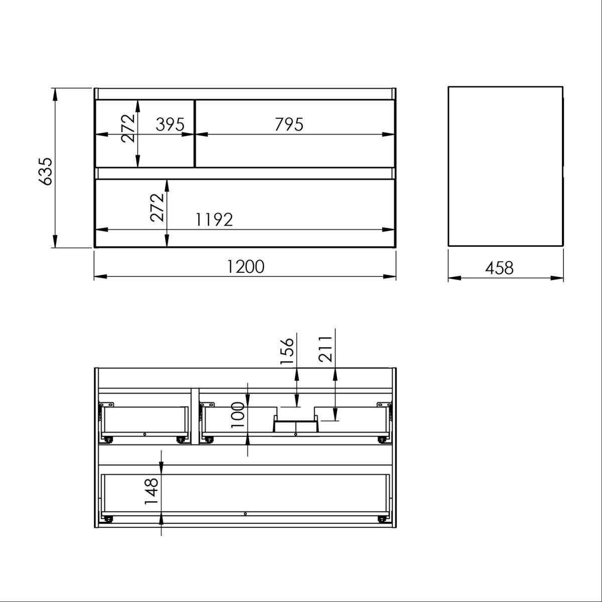 Elita Split Kabinett 120x45.8x63.5 cm Unterschrank hängend schwarz RE012005157160