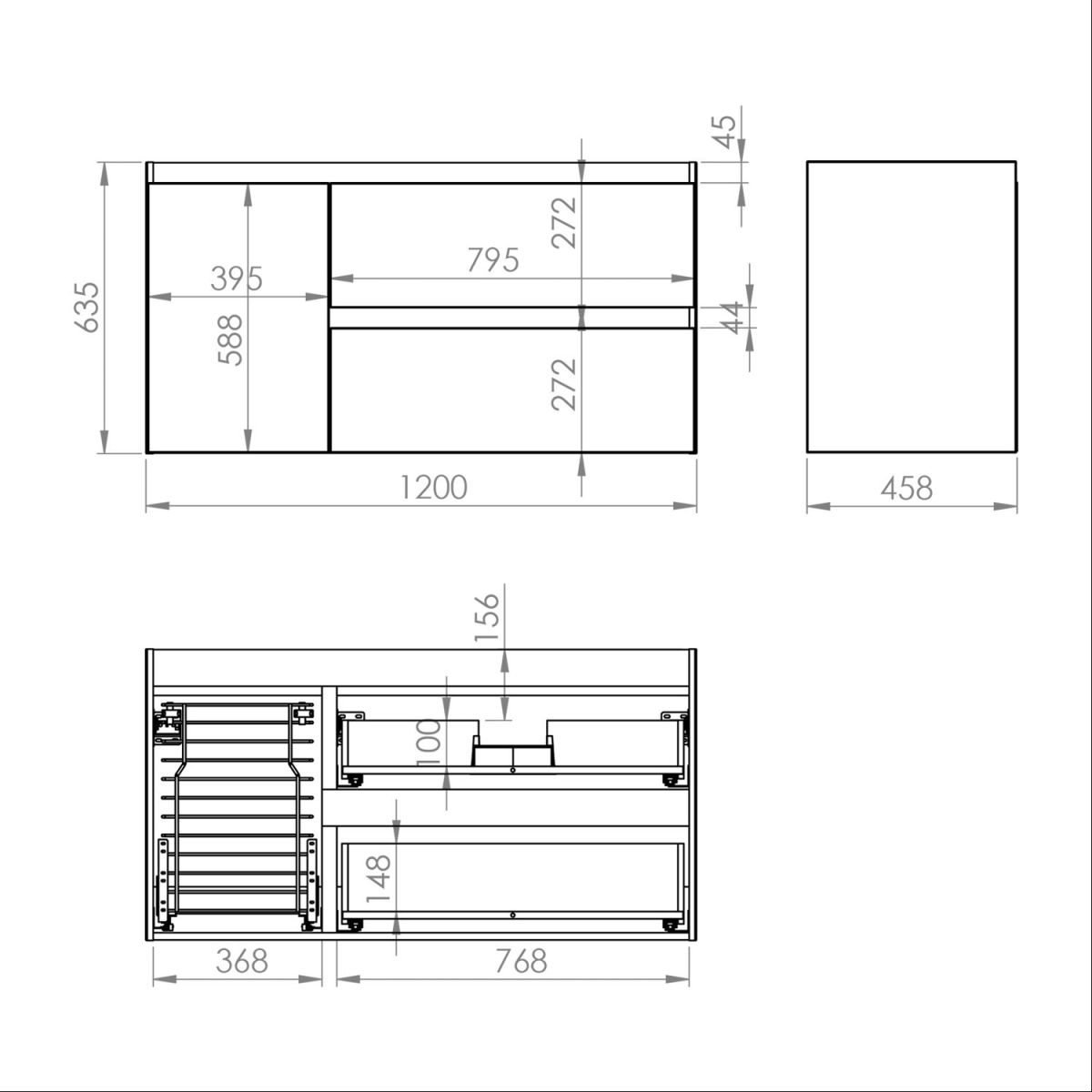 Der Waschtischunterschrank Split 120 besteht aus einem Waschtischunterschrank 80 und einer Kommode 40 mit Cargo-Korb auf der linken Seite. Waschtischunterschrank mit 2 Schubladen mit Metallseiten, Vollauszug und Soft-Close-System. Der Cargo-Korb in der Kommode verfügt über robuste Führungen mit einer Tragkraft von bis zu 20 kg, Vollauszug und Soft-Close-System. Der Schrank ist aus hochwertigen Materialien gefertigt, die Front und der Korpus bestehen aus laminierter Platte, lackiert in Weiß matt. Gefräste Griffe, im 45°-Winkel profiliert. Der Schrank ist für die Kombination mit ElitStone-Arbeitsplatten geeignet.