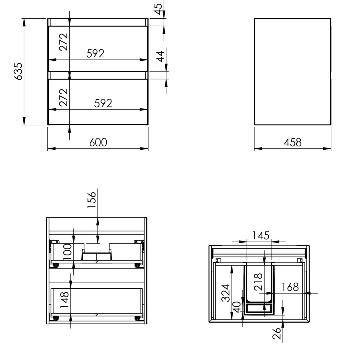 Elita Split Kabinett 60x45.8x63.5 cm Unterschrank hängend schwarz RE010600057160