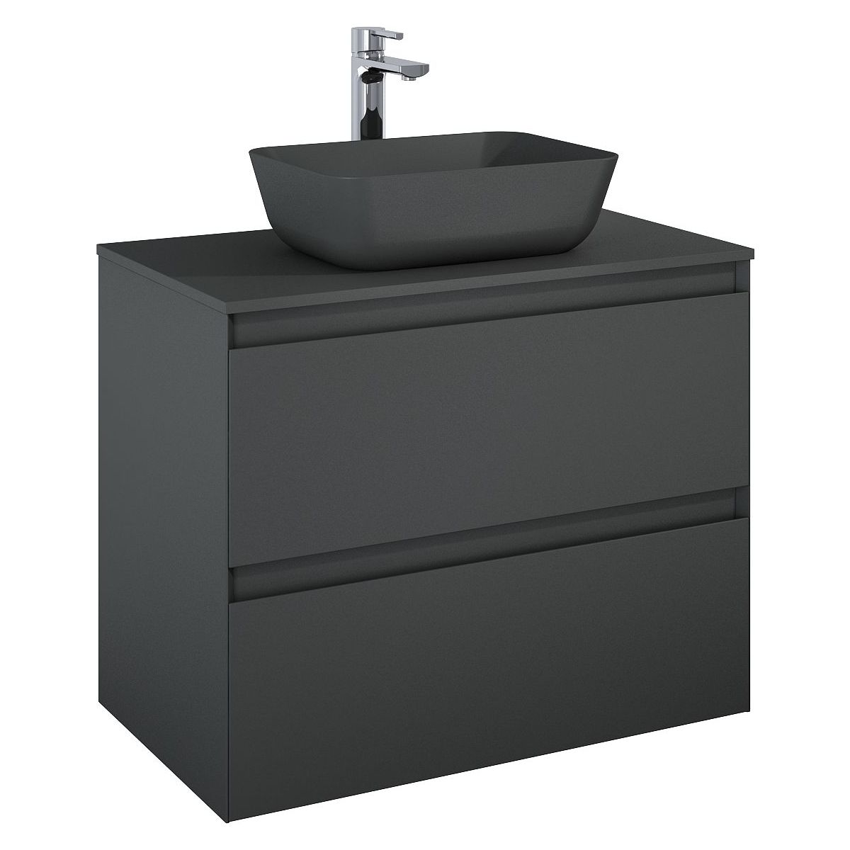 Waschbeckenunterschrank Split 80 cm, 2 Schubladen mit Metallseiten, mit Vollauszug und Soft-Close-System. Der Schrank ist aus hochwertigen Materialien gefertigt, die Front und der Korpus bestehen aus laminierter Platte, lackiert in Anthrazit matt.