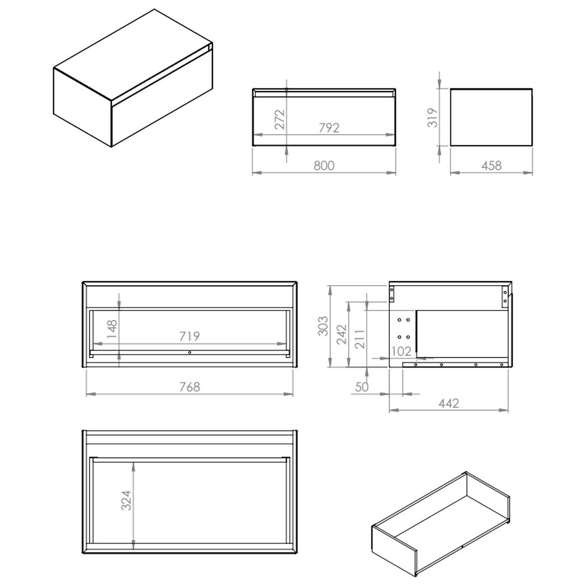 - dünne Stahlseitenwände der Schublade mit einer Stärke von 13 mm