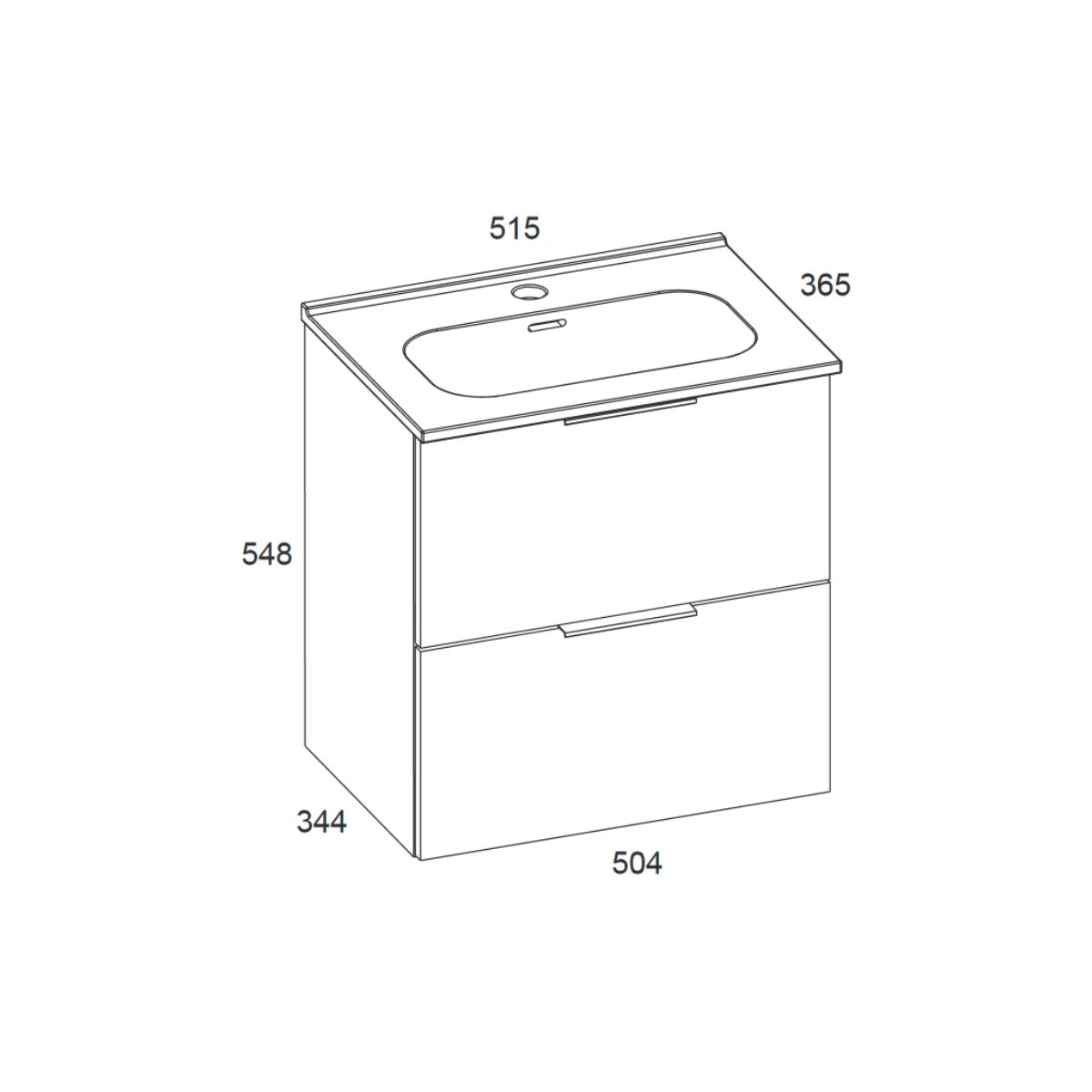 - Breite des Unterschranks: 504 mm