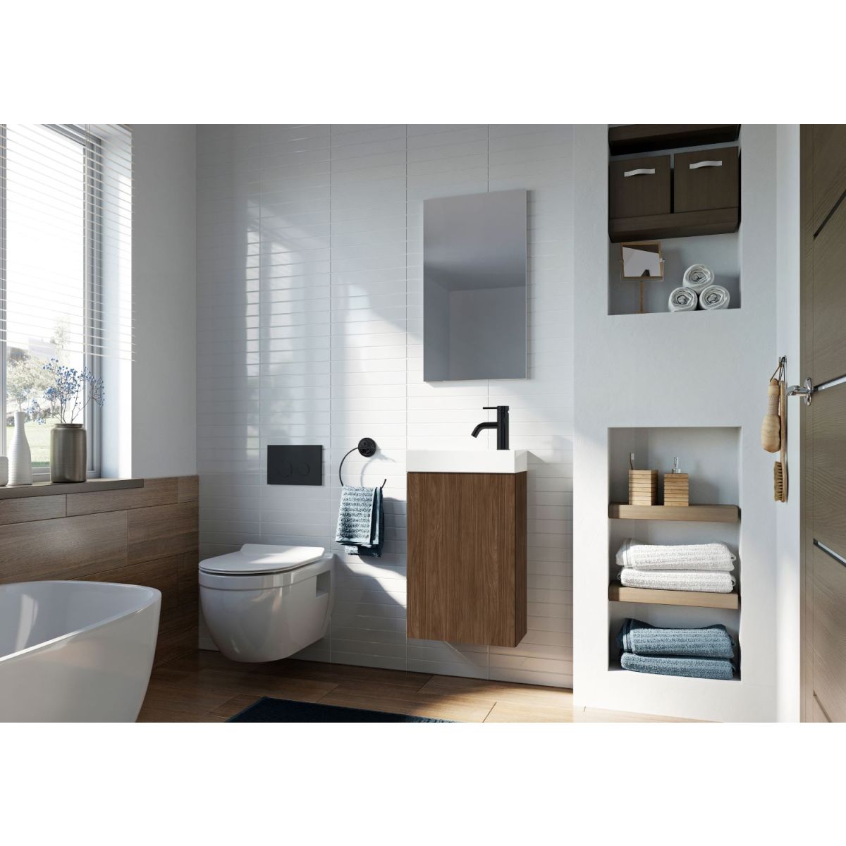 Young Basic ist eine perfekte Kombination aus minimalistischer Form und Funktionalität. Die leichte und zugleich robuste Konstruktion des Sets passt perfekt zu minimalistischen Badezimmern, und die Kraft der Schlichtheit des Möbels sorgt für eine ideale Anpassung an jedes Interieur.