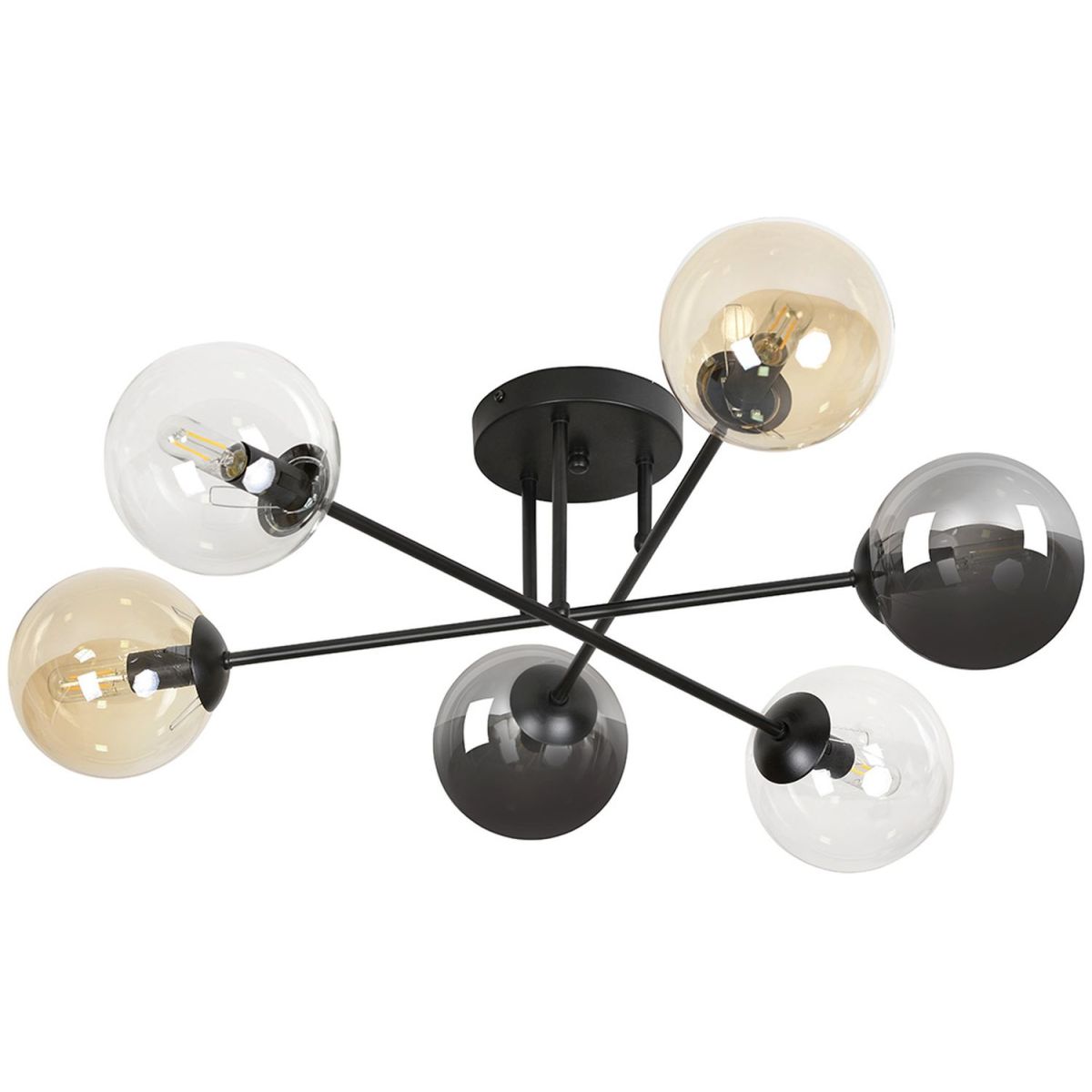 Emibig Brendi Deckenlampe 6x10 W schwarz-transparent-bernstein-graphit 834/6B2