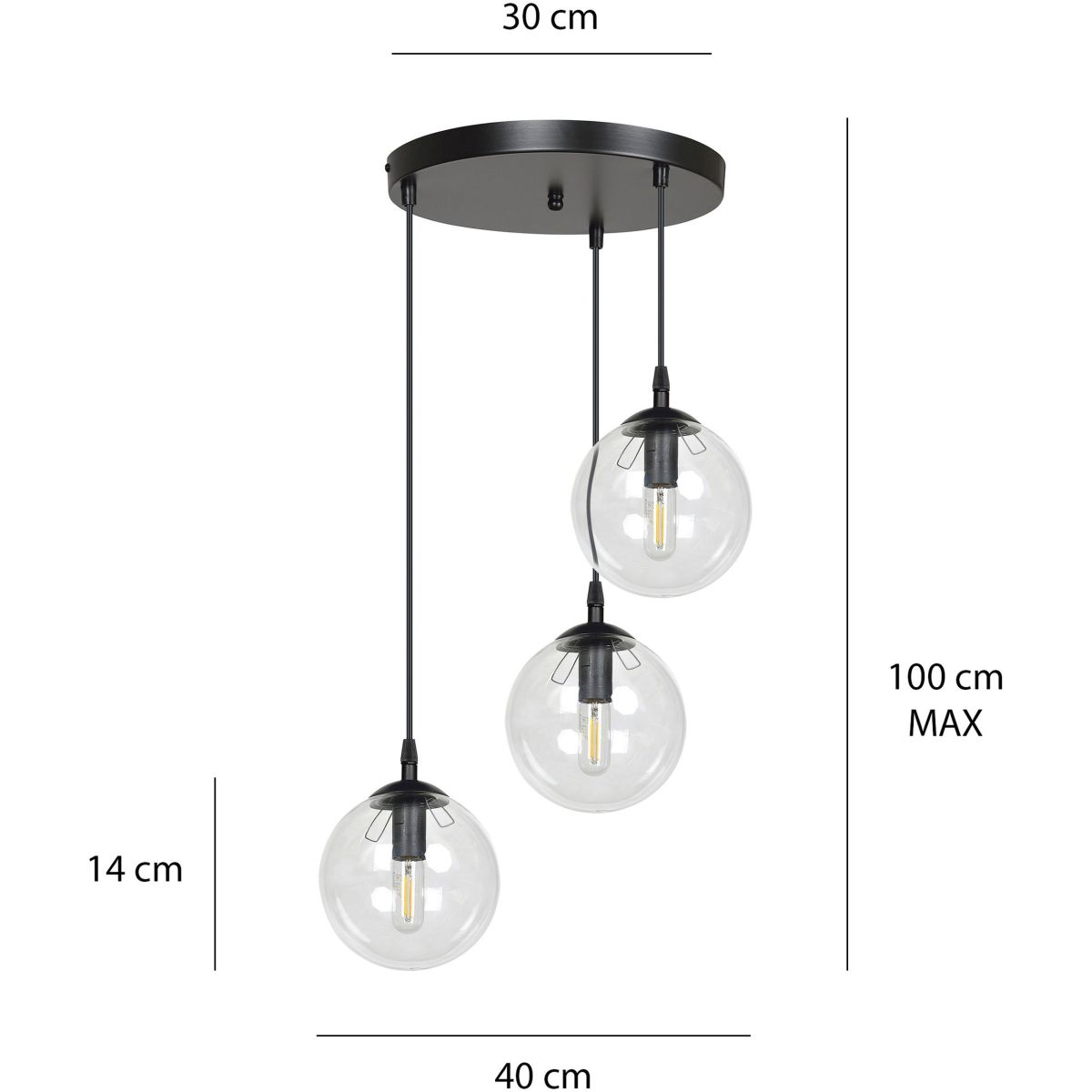 Emibig Cosmo Pendelleuchte 3x10 W schwarz-transparent 711/3PREM