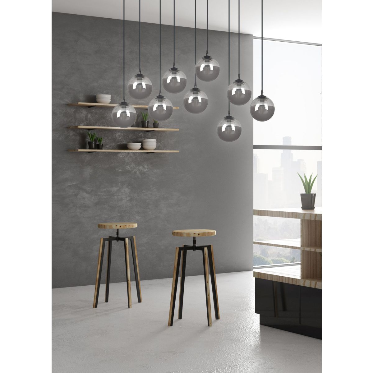 Die Cosmo-Lampen sind eine Serie, die sowohl moderne als auch klassische Innenräume perfekt ergänzt. Am eindrucksvollsten wirkt sie über einem Tisch oder einer Kücheninsel. Sie schafft eine einzigartige Atmosphäre im Raum dank ihres dekorativ nach unten gestreuten Lichts. Die Höhe der Lampe kann nach Belieben eingestellt werden, und die verwendete E14-Fassung ermöglicht eine große Auswahl an Glühbirnen.