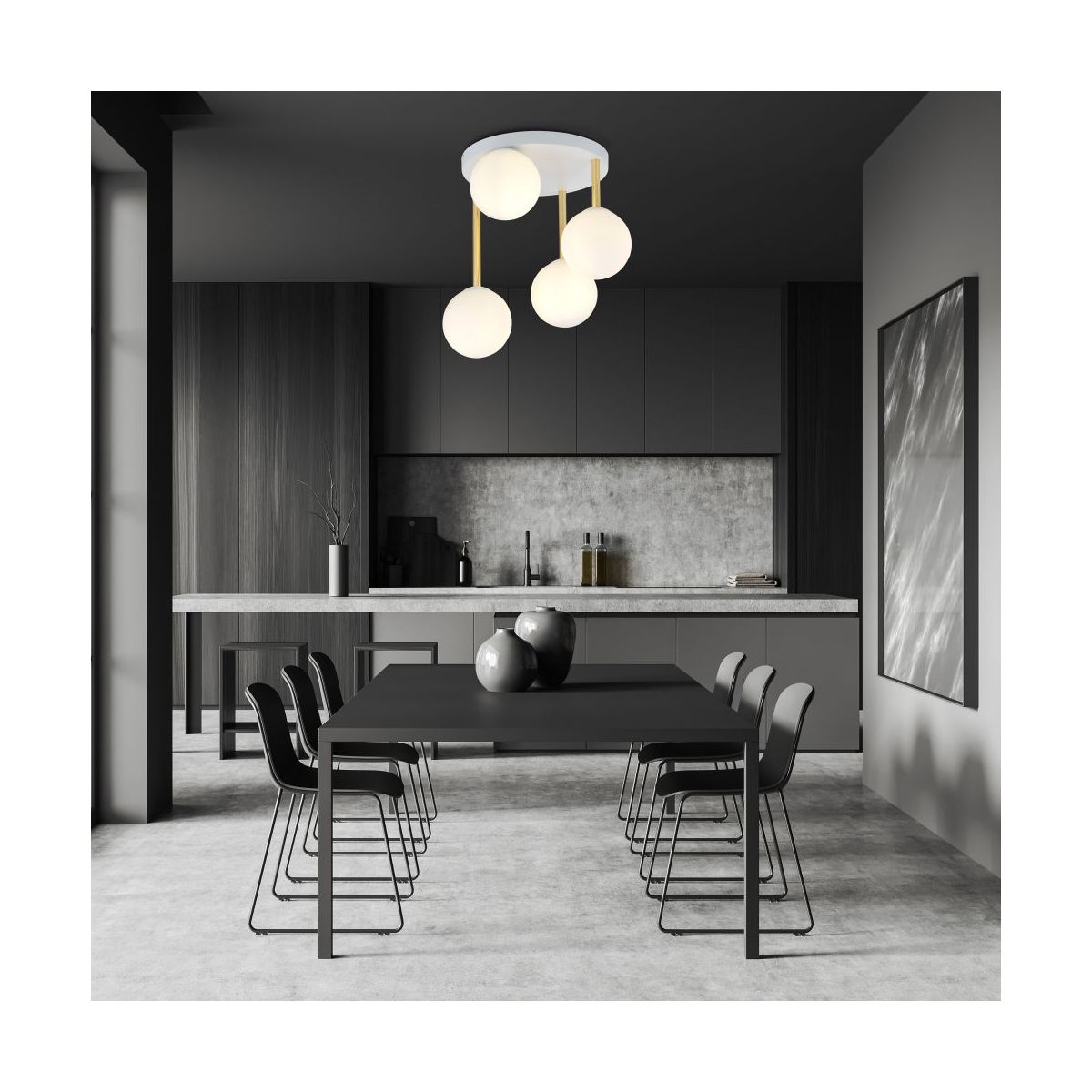 Die Deckenleuchte DOLCE ist ein elegantes Beispiel für Minimalismus, der dank goldener Elemente zusätzlichen Charakter und Chic erhält. Durch ihre schlichte Form und ihren universellen Stil passt sie zu verschiedenen Arten von Innenräumen, sowohl modernen als auch eher klassischen. Die Deckenleuchte DOLCE ist die ideale Wahl für Räume mit niedriger Decke, da ihre flache Form Platz spart und gleichzeitig für eine angemessene Beleuchtung sorgt. Sie macht sich wunderbar über dem Couchtisch, in der Küche oder im Schlafzimmer. Die aus hochwertigen Materialien gefertigte Deckenleuchte DOLCE ist langlebig und funktional. Darüber hinaus sind verschiedene Farben der Lampenschirme erhältlich, sodass die Beleuchtung an individuelle ästhetische Vorlieben angepasst werden kann. Das Produkt ist zu 100 % polnisch und in Schwarz oder Weiß für 3 oder 4 Lichtquellen erhältlich.
