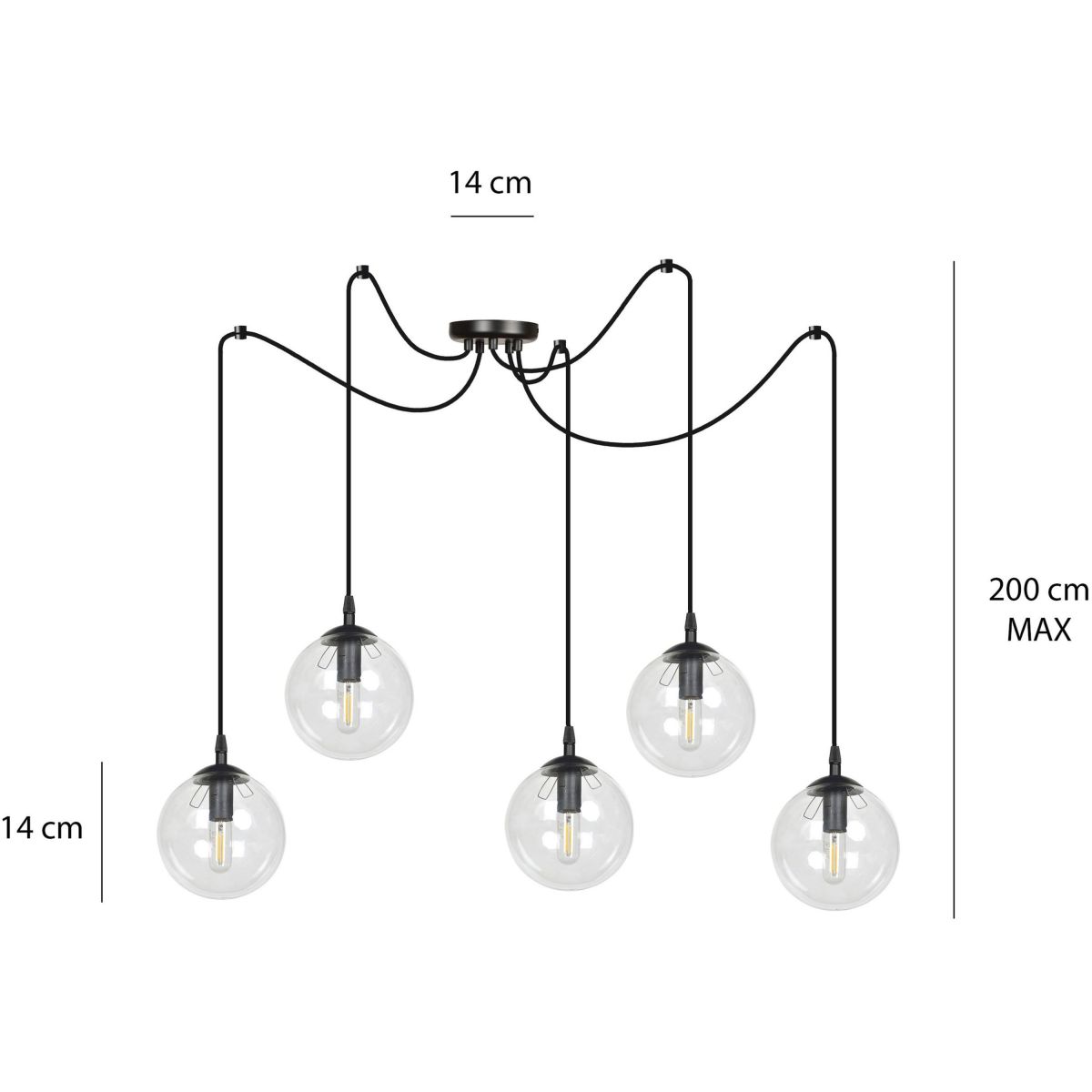 Emibig Gigi Pendelleuchte 5x10 W schwarz-transparent 936/5