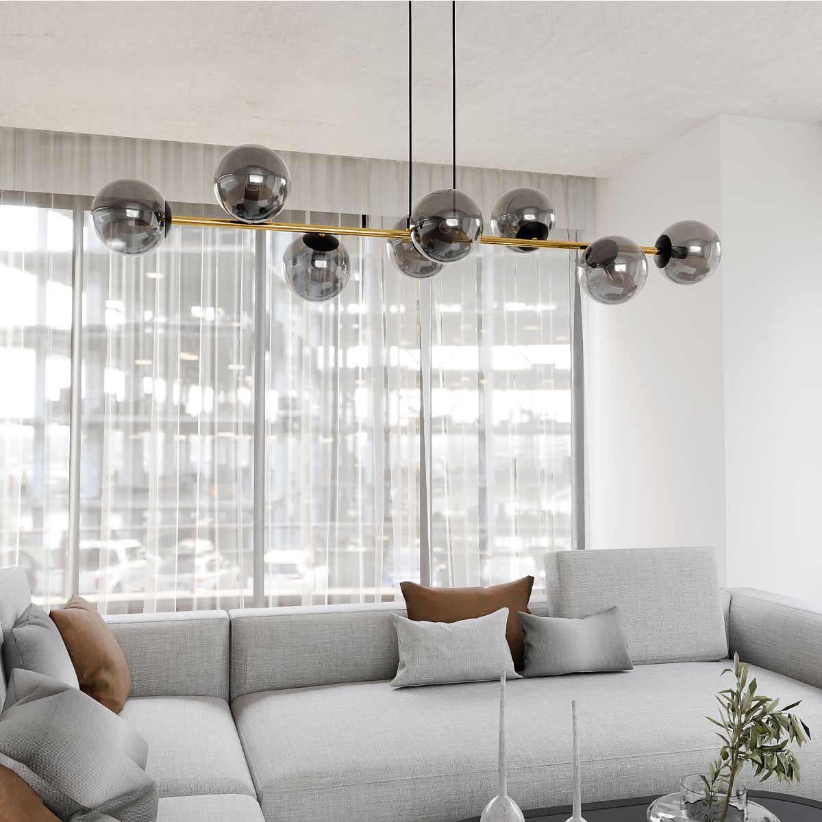 Diese Kollektion von Deckenleuchten ist eine perfekte Kombination aus minimalistischem Stil und einem Hauch von glamourösem Gold, was ihnen einen einzigartigen Charme und Eleganz verleiht. Diese Lampen eignen sich ideal für moderne und klassische Einrichtungen, verleihen Räumen Charakter und schaffen eine einzigartige Atmosphäre der Eleganz. Die GRAVITY-Deckenleuchten werden aus Materialien höchster Qualität hergestellt, was nicht nur Langlebigkeit, sondern auch ein lang anhaltend perfektes Aussehen garantiert. Die goldenen Akzente bilden einen perfekten Kontrast zur minimalistischen Form der Leuchte, verleihen dem Raum Glanz und beleben ihn. Erhältlich in Schwarz oder Weiß, für 6 oder 8 Lichtquellen. Das Produkt ist zu 100 % polnisch.
