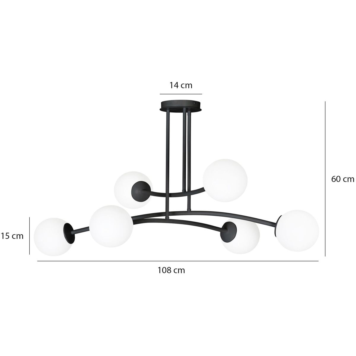 Emibig Halldor Deckenlampe 6x10 W schwarz-milchig 1024/6