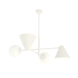 HERMES – Eine Kombination aus modernem Stil und der Strenge des industriellen Stils. Die Ausführung der Lampe präsentiert perfekt den Kontrast zwischen der Zartheit des Glases und der Härte und Kühle des Metalls. Die Verwendung von zwei Arten von Lampenschirmen und die etwas unregelmäßige Form machen die HERMES-Serie einzigartig und außergewöhnlich. Diese Leuchte spendet nicht nur Licht, sondern sieht auch toll aus und bereichert die Raumgestaltung. Wenn Sie ungewöhnliche Lösungen mögen, wird diese Lampe Ihre Erwartungen erfüllen. Sie ist die richtige Wahl für alle, die einen strengen, aber stilvollen Einrichtungsstil mögen. Es handelt sich nicht nur um eine gewöhnliche Lampe, sondern um ein starkes Dekorationselement, das Ihrem Raum Charakter verleiht. Die Metalllampenschirme können Sie in beliebiger Position einstellen. Die Serie ist in Schwarz und Weiß mit 2, 4 oder 6 Lichtpunkten erhältlich. Das Produkt ist zu 100 % polnisch und wurde mit Liebe zum Detail aus Materialien höchster Qualität hergestellt.