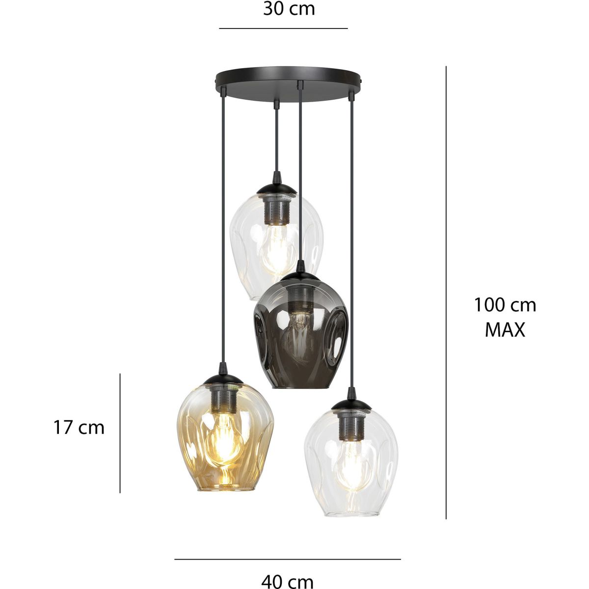 Emibig Istar Pendelleuchte 4x15 W schwarz-transparent-bernstein-graphit 682/4PREM