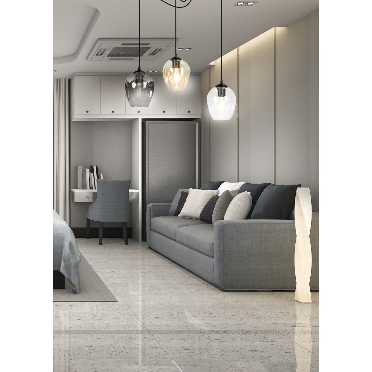 - Farbe der Lampenschirme: graphit/honigfarben/transparent