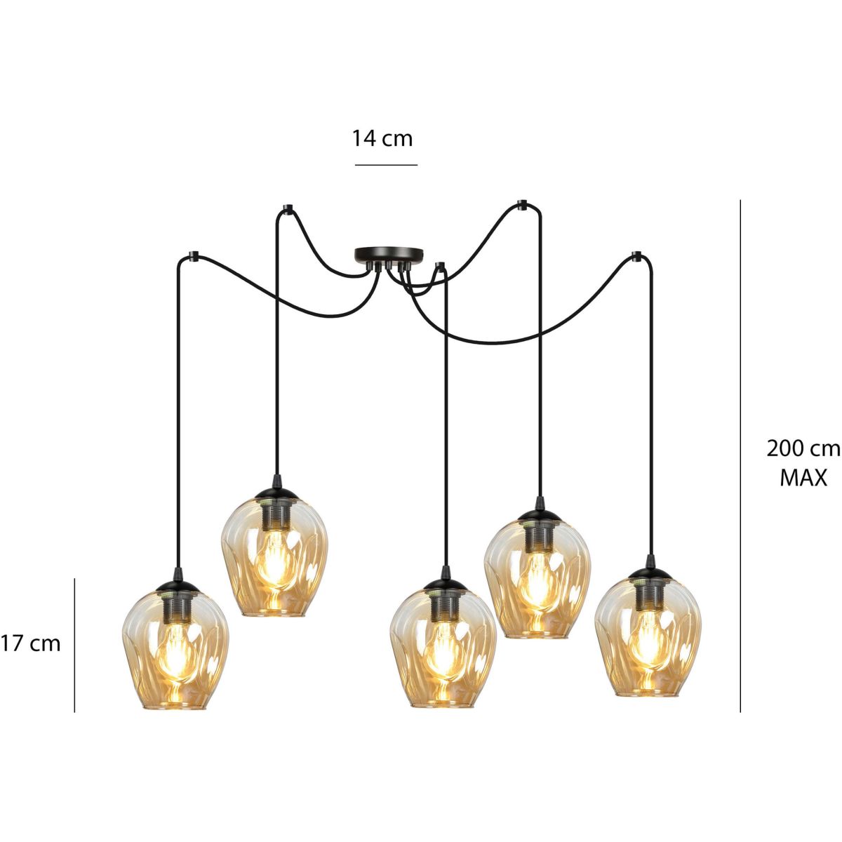 Emibig Level Pendelleuchte 5x15 W schwarz-bernstein 758/5