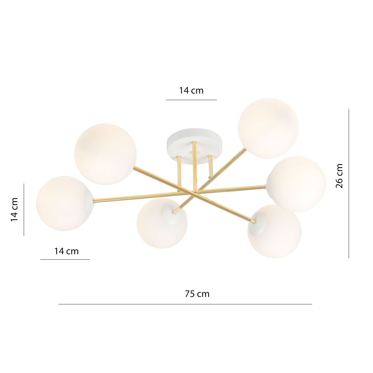 Die Magnum-Serie ist eine einzigartige Beleuchtung, die speziell für moderne Innenräume entwickelt wurde. Die Glaslampenschirme und die goldene Konstruktion bilden eine harmonische Komposition und sind eine Augenweide. Ein Produkt von ausgezeichneter Qualität, das eine lange Lebensdauer garantiert. Erhältlich in Weiß oder Schwarz mit 2, 4 oder 6 Lichtquellen. Polnisches Produkt.