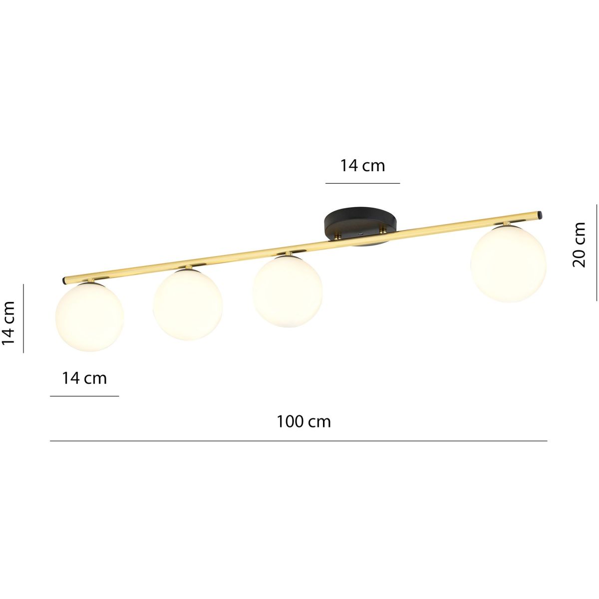 Emibig Monza Deckenlampe 4x10 W schwarz-gold-opal 1252/4