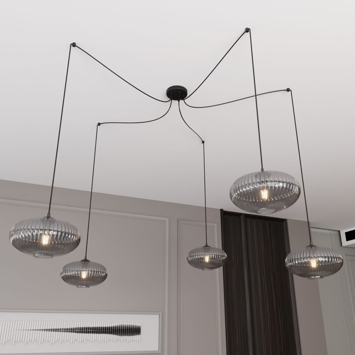 ORIGO ist eine einzigartige Serie von Pendelleuchten vom Typ „Spinne”. Der große, elliptische Lampenschirm mit origineller Struktur und die langen Kabel, deren Länge individuell angepasst werden kann, machen die ORIGO-Lampe zu einem perfekten Dekorationselement für Ihr Interieur. Funktionalität verbindet sich hier mit modernem Design und Eleganz. Die Serie ist in Versionen mit 1, 3 oder 5 Lichtquellen erhältlich. Lampenschirme in Weiß oder Graphit. Das Produkt ist zu 100 % polnisch und aus Materialien höchster Qualität gefertigt.
