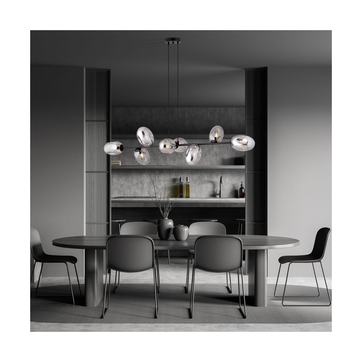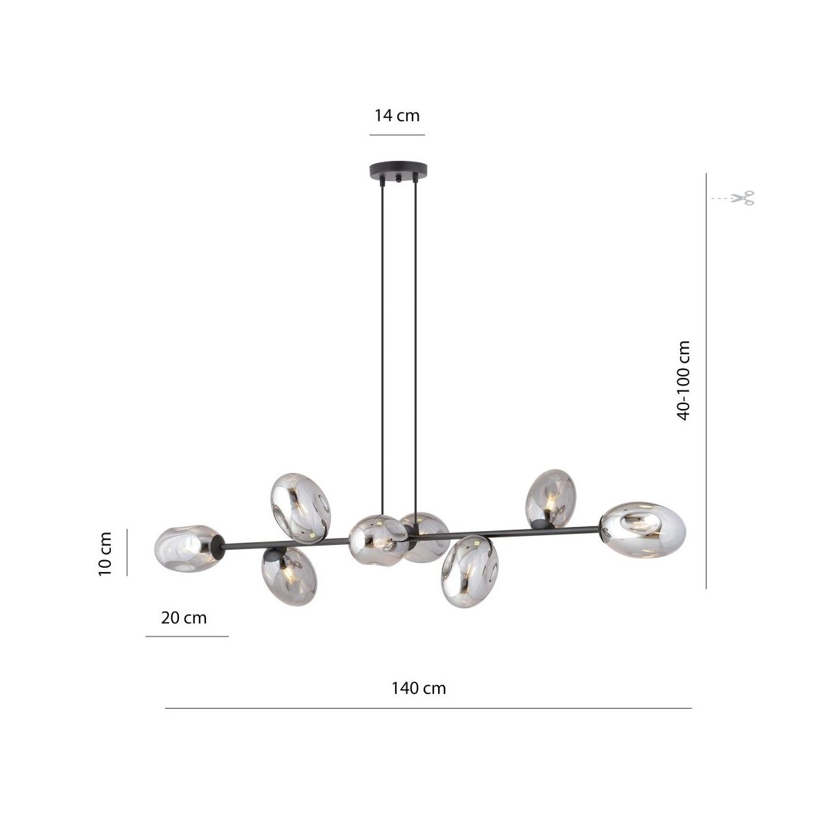 Diese moderne Leuchte hat eine einzigartige Form der Lampenschirme, die elegant und stromlinienförmig ist und jedem Raum Charme und Individualität verleiht. Sie passt perfekt zu verschiedenen Innenräumen, sowohl zu modernen, minimalistischen als auch zu eher klassischen. Dank der Auswahl an mehreren Farben der Lampenschirme kann die Leuchte an Ihre Vorlieben und Ihren Einrichtungsstil angepasst werden. Die Serie PANDORA ist in einer Version mit 6 oder 8 Lichtquellen erhältlich.